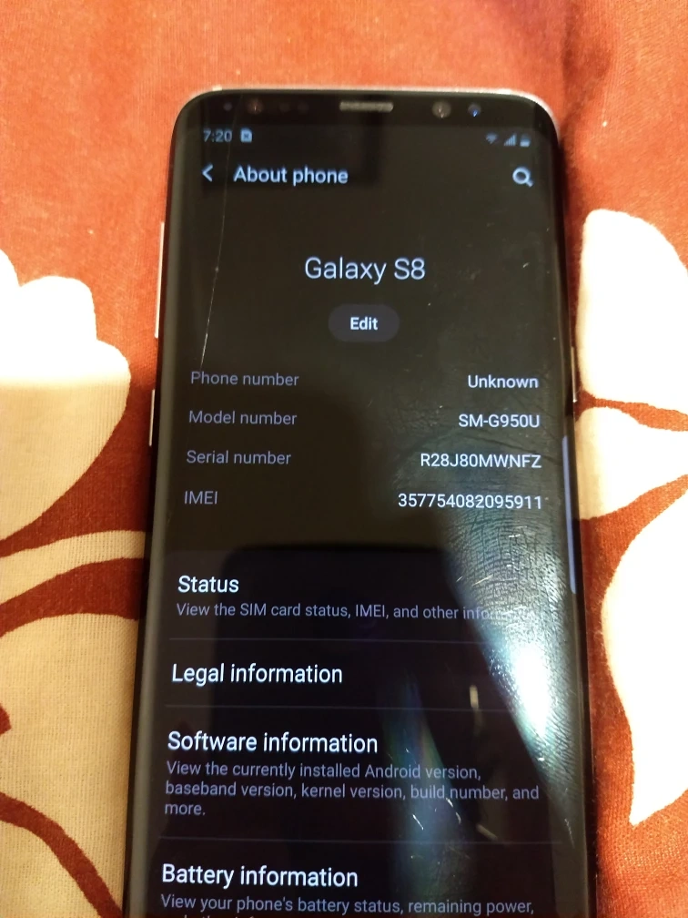 Samsung Galaxy S8 - This phone is in okay cosmetic condition with the back glass being replaced, the frame having a small dent on the corner, aswell as the front of the phone having a single crack on the screen. All functions have been tested and do work, but the screen has burn in on the phone. This phone was carrier locked to T-Mobile, but it can be unlocked, which means that once you unlock it, you can be able to use any SIM card in this phone. Other than that, this phone is reset and ready to go. IMEI shown in the 8th photo.
