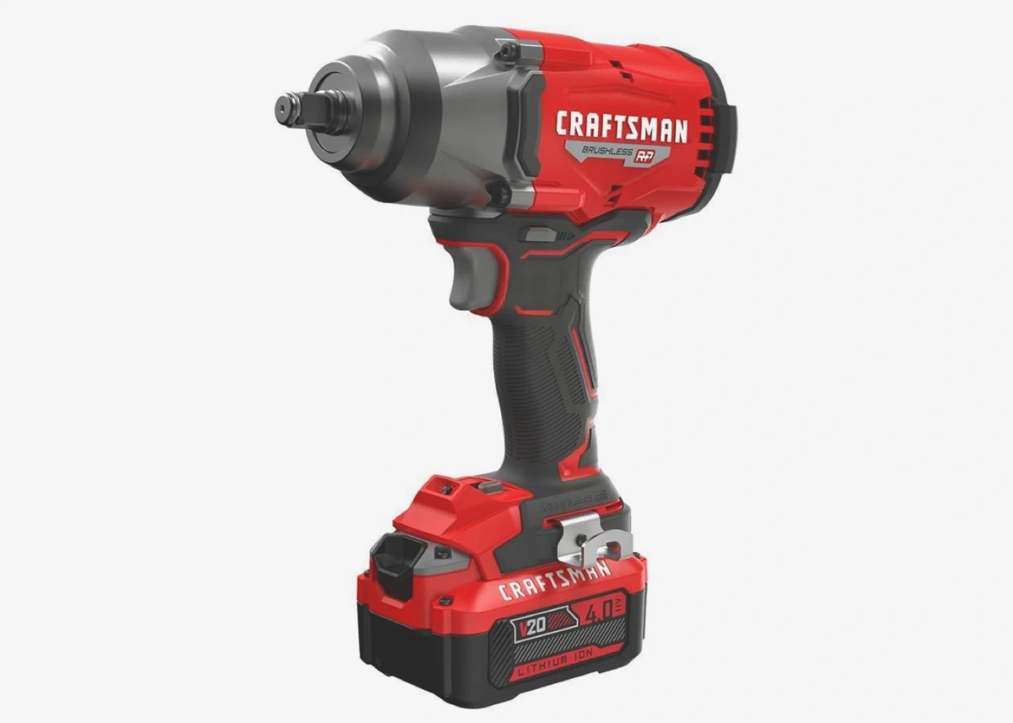 This is a Craftsman V20 cordless impact wrench. It's a brushless RP model. Includes a 4.0 Ah lithium-ion battery.