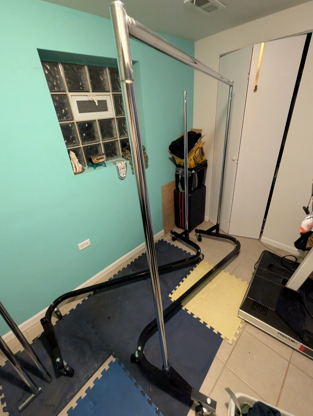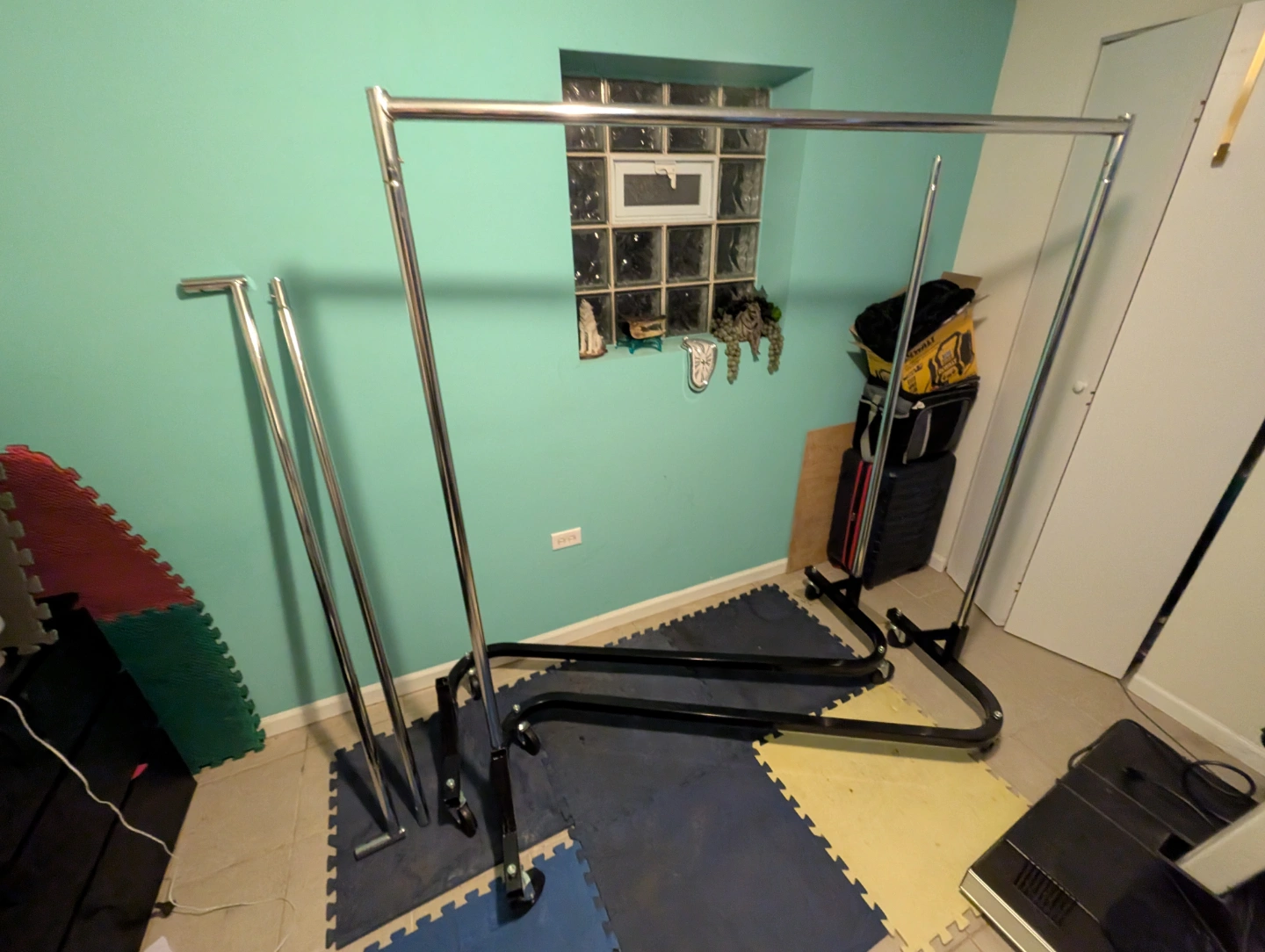 Prepare yourself for outdoor selling season with these commercial-grade garment racks with nestable Z-Base and removable wheels! Easily disassembles without tools for convenient transportation. Measures approximately 61.5" wide × 68.5" tall × 23" deep. $50 each or $90 for the pair. From home with dogs. North Center near Damen & Montrose
