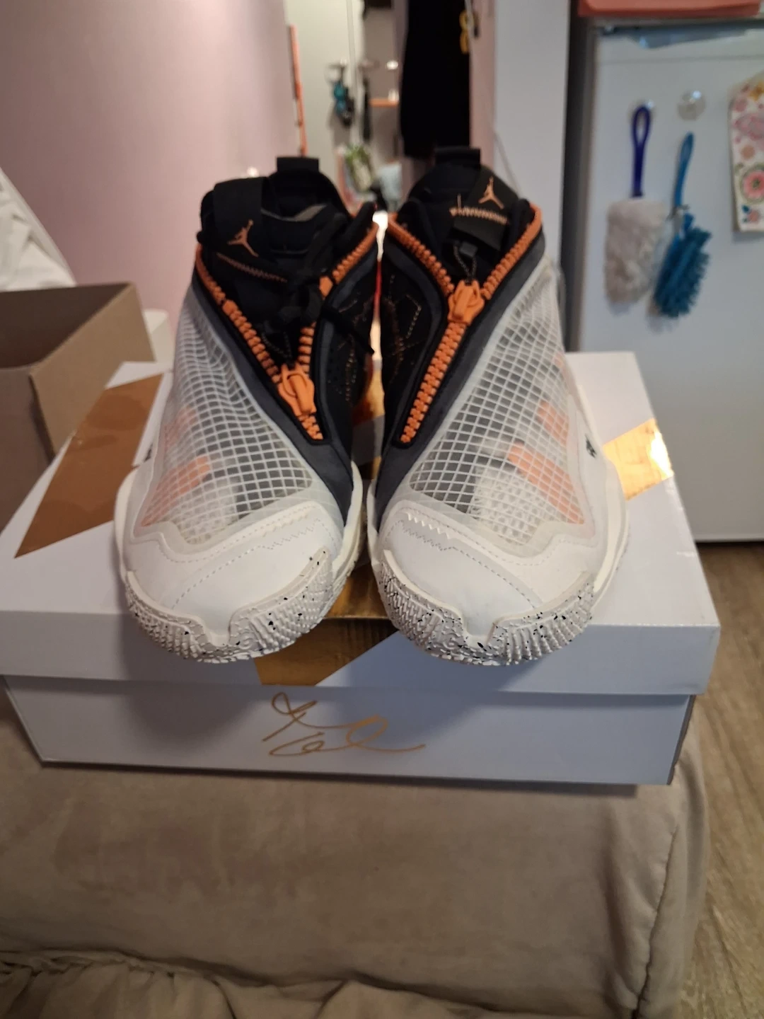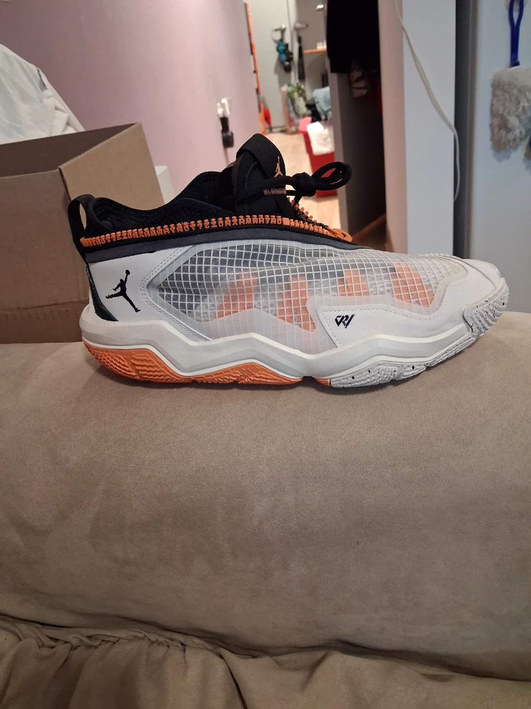Men's New and Original Westbrook Air Jordan's Why Not 6 (XXXVI SE) Kicks In Phantom/Black-Rattan Fantome/Rotin/Ivoire Pale/Noir Colorway. These Sneakers Feature A Unique Zip-Up Shroud & Translucent Upper. Includes Original Box.