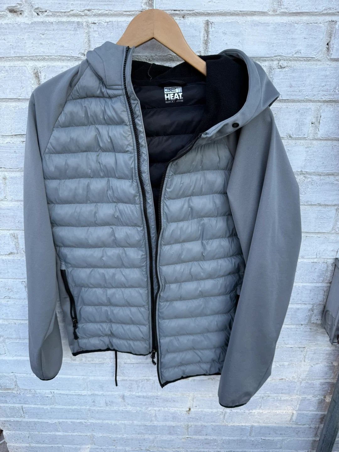Selling a 32 Degrees Heat puffer jacket! It's a stylish and warm jacket, perfect for cooler weather. The jacket features a combination of puffer and softshell materials, providing both insulation and flexibility. Great for everyday wear!