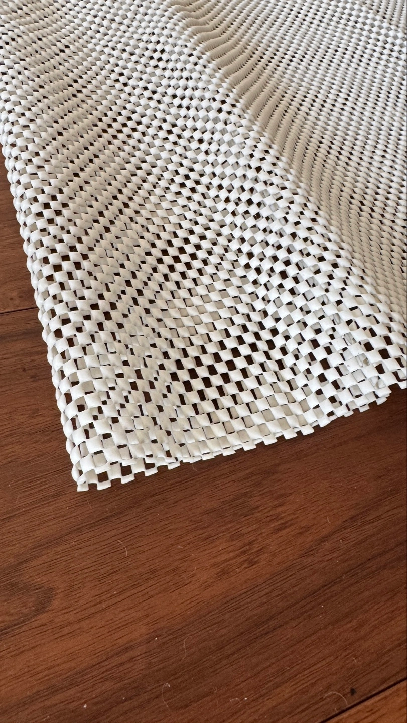 Large white mesh rug pad. Prevents rugs from slipping. Great for hardwood floors. Never used.