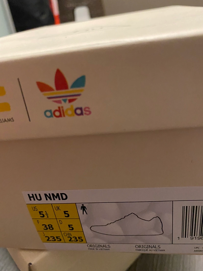Brand new, never worn, in box. Limited Edition Pharell x Adidas NMDs sold out online. Currently selling for $430 USD on Farfetch.