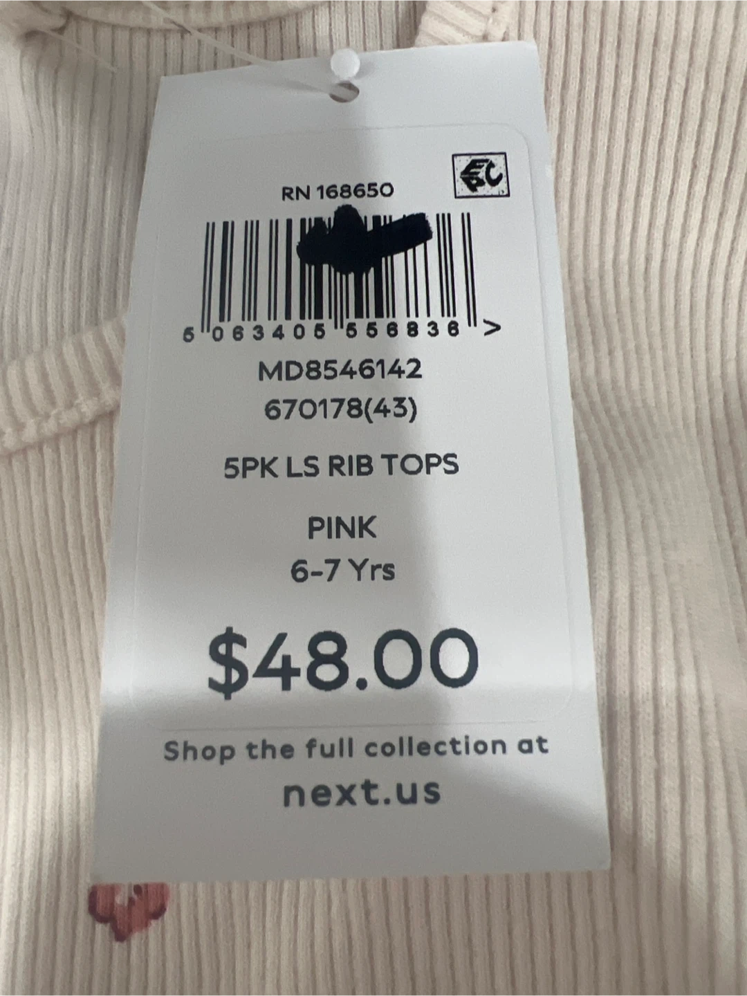 Next 5PK LS Rib Tops - Size 6-7 Yrs
