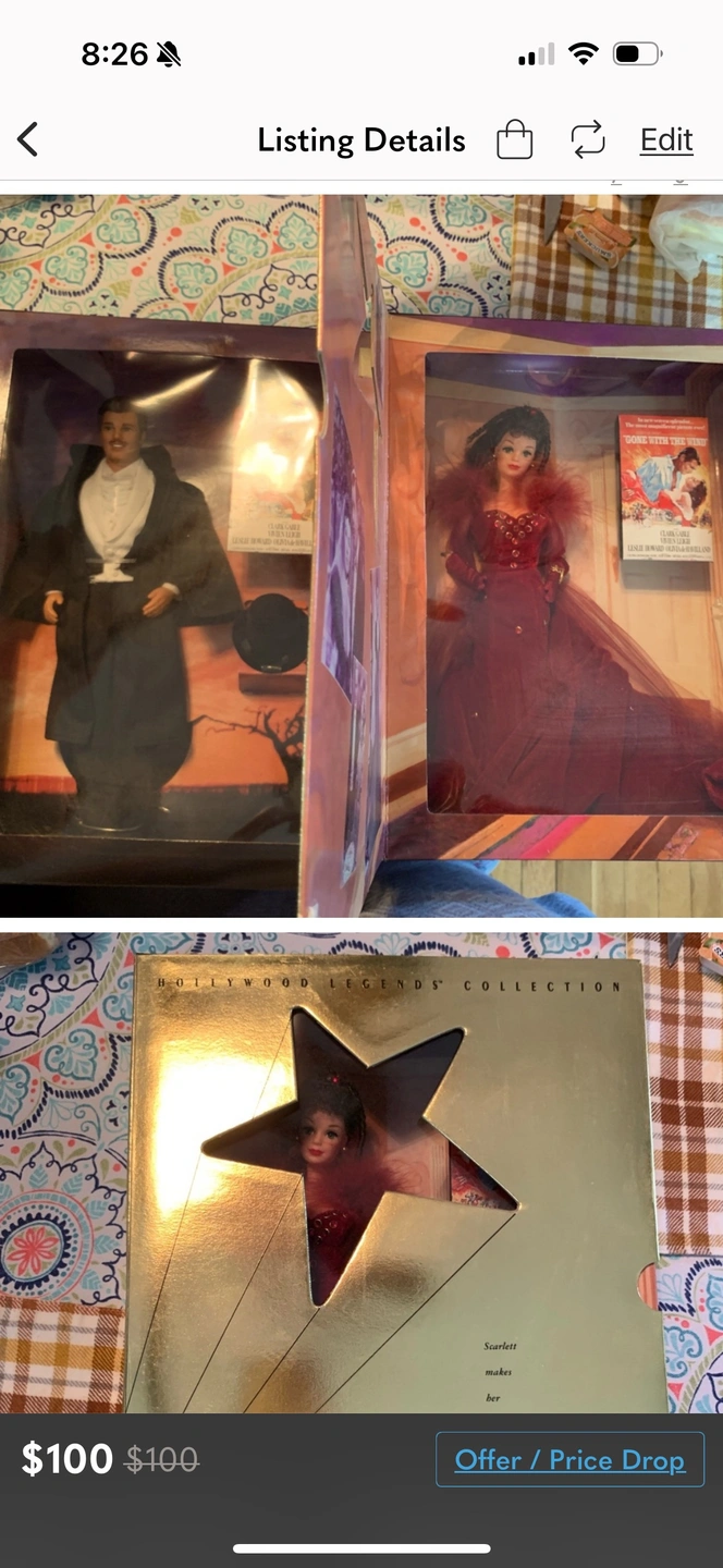 361994 Mattel Hollywood Legends Collection Rhett Butler Ken Barbie Doll and Scarlett O’Hara Barbie Doll Never removed from box Kept in storage with the original cardboard box as well. Please ask any questions!