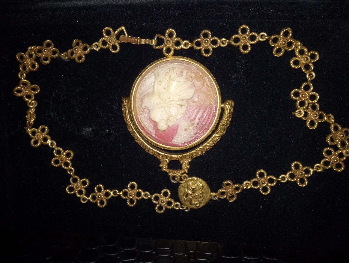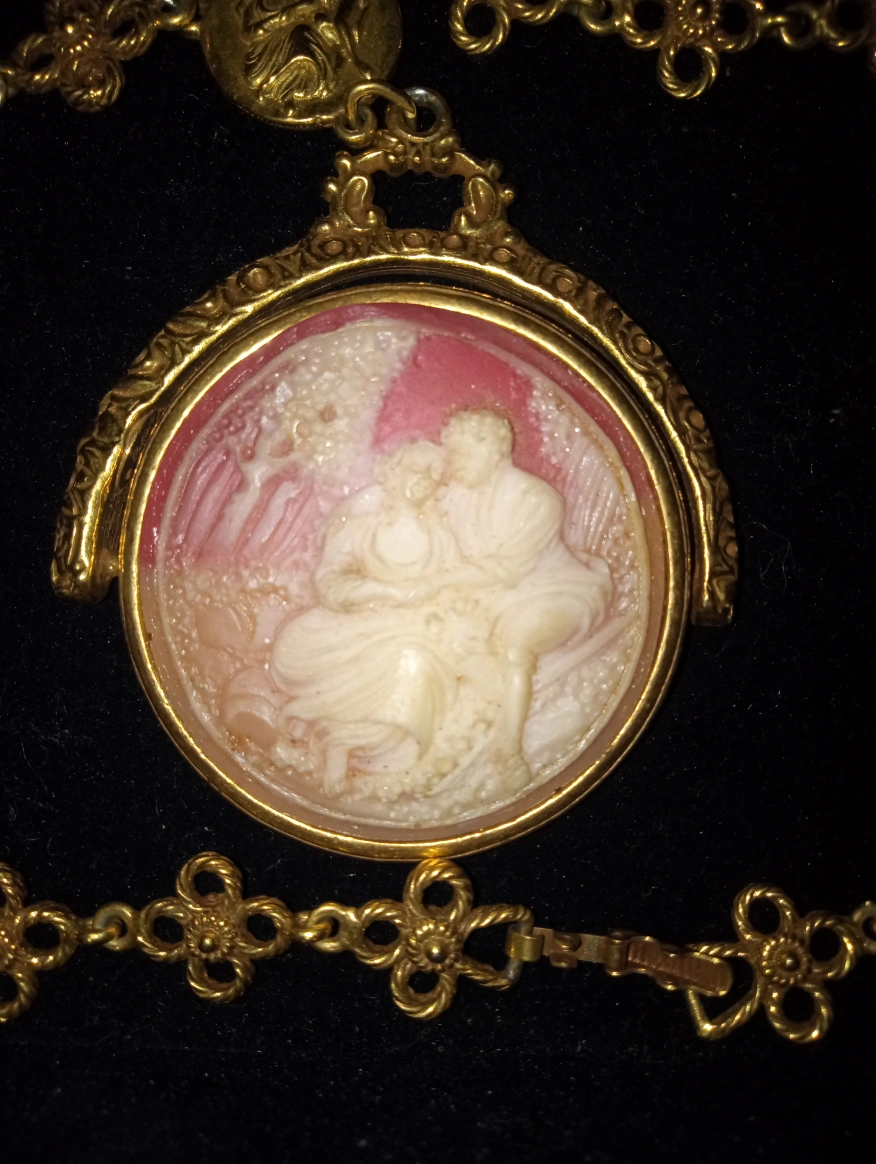 Vintage Goldette New York cameo necklace in very good condition. Collectors item! Approximate Measurements: Chain Length 18” Pendant Length 3.5”, Width 2.3” Made in USA 100% Authentic.