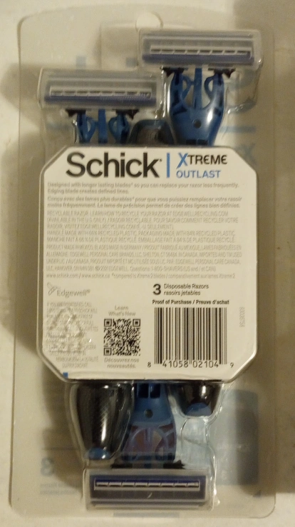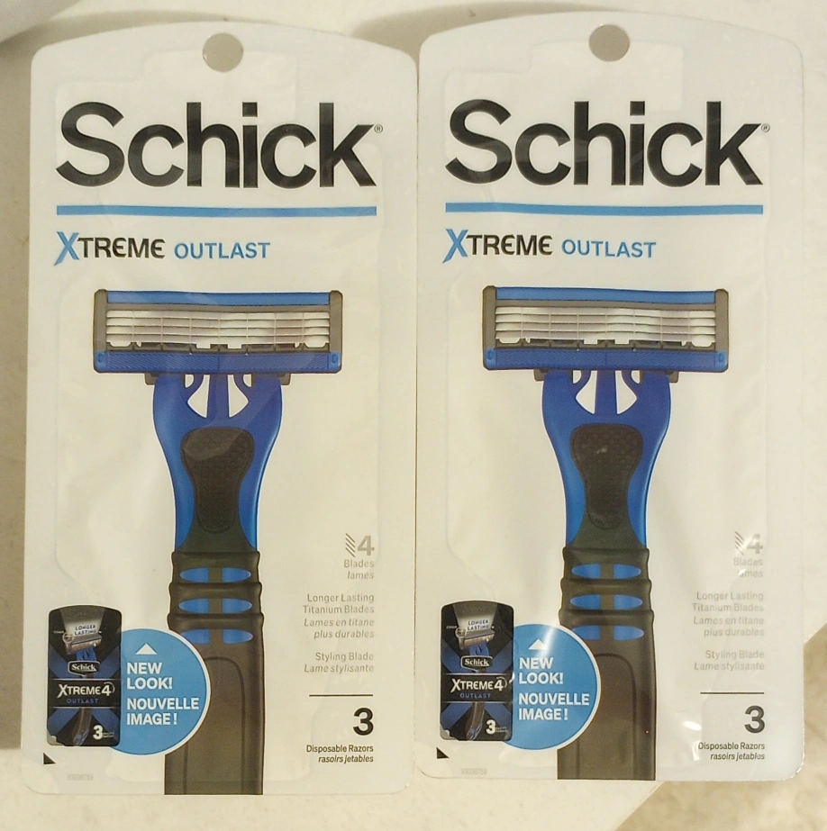 Selling sets of Schick Xtreme Outlast 4-blade disposable razors Qty: 3 disposable razors per pack Only available for pickup **Check out my other listings and build a large bundle for delivery; minimum for delivery is $70