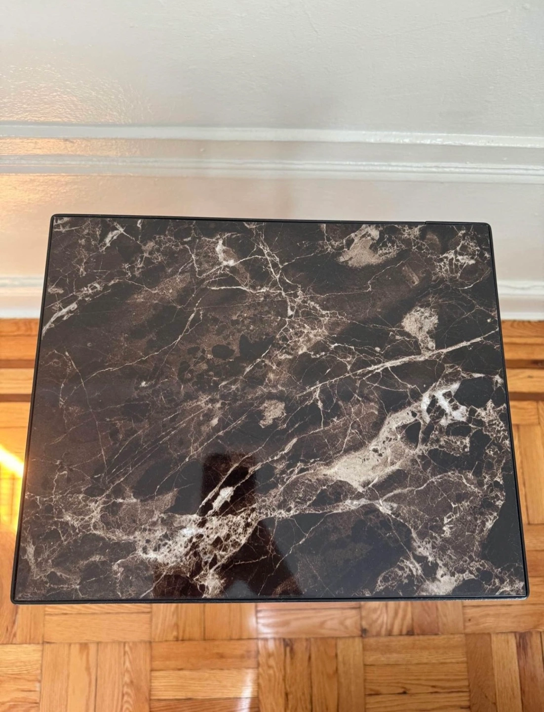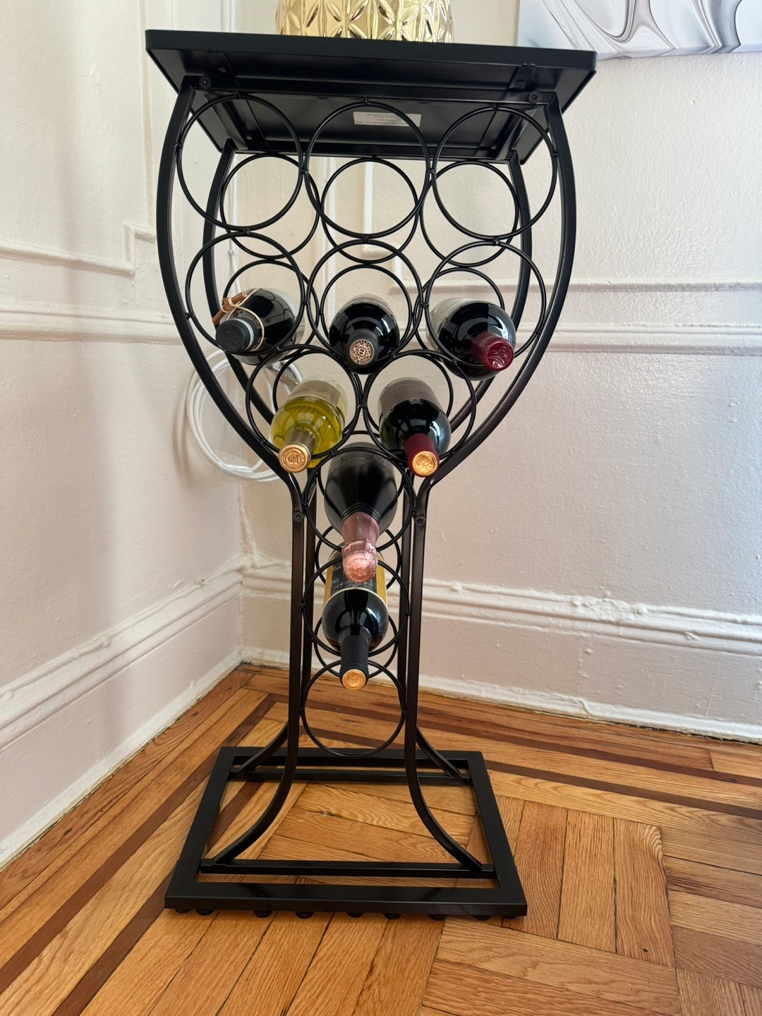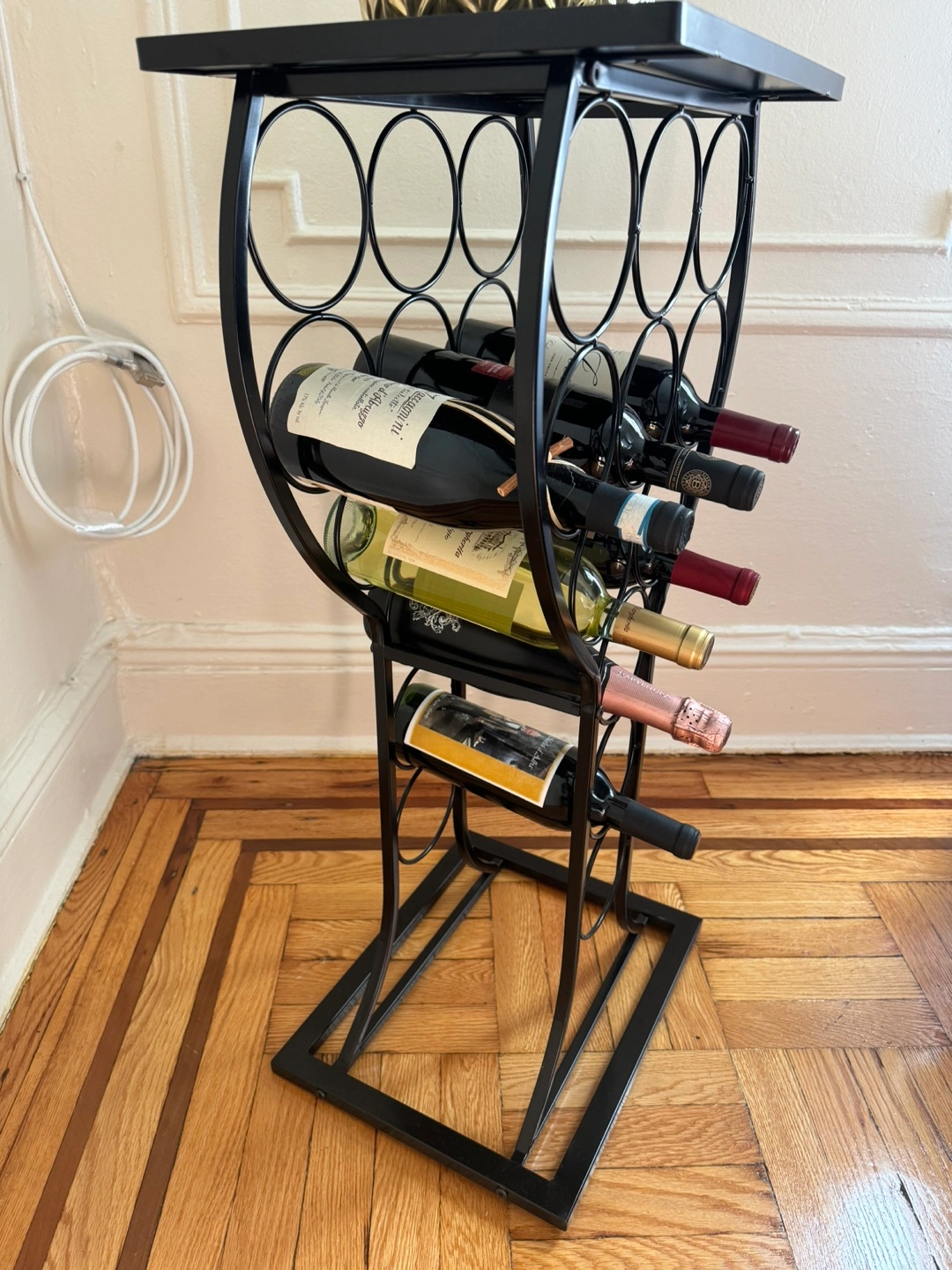 77Wine rack with a marble top. Holds multiple bottles of wine. Metal construction. Black. Kings Brand Furniture - Freestanding Wine Rack Stand Storage & Display Holder, Marble Finish Table Top that Holds 11 Bottles (Black)
