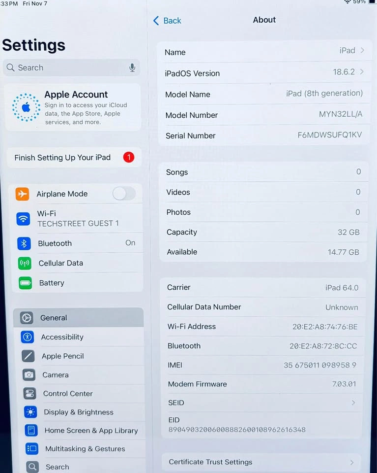 I am selling Apple iPad 8th Gen, 32 GB, WiFi + Cellular. I factory reset it, so it's like new and all accounts and data is removed.