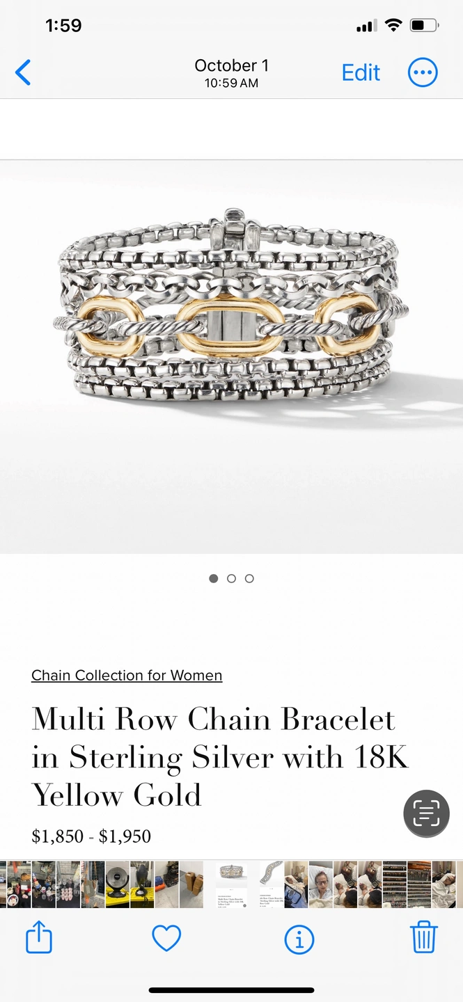 Sterling silver and 18k yellow gold bracelet with gold accents. Multiple rows of chain.