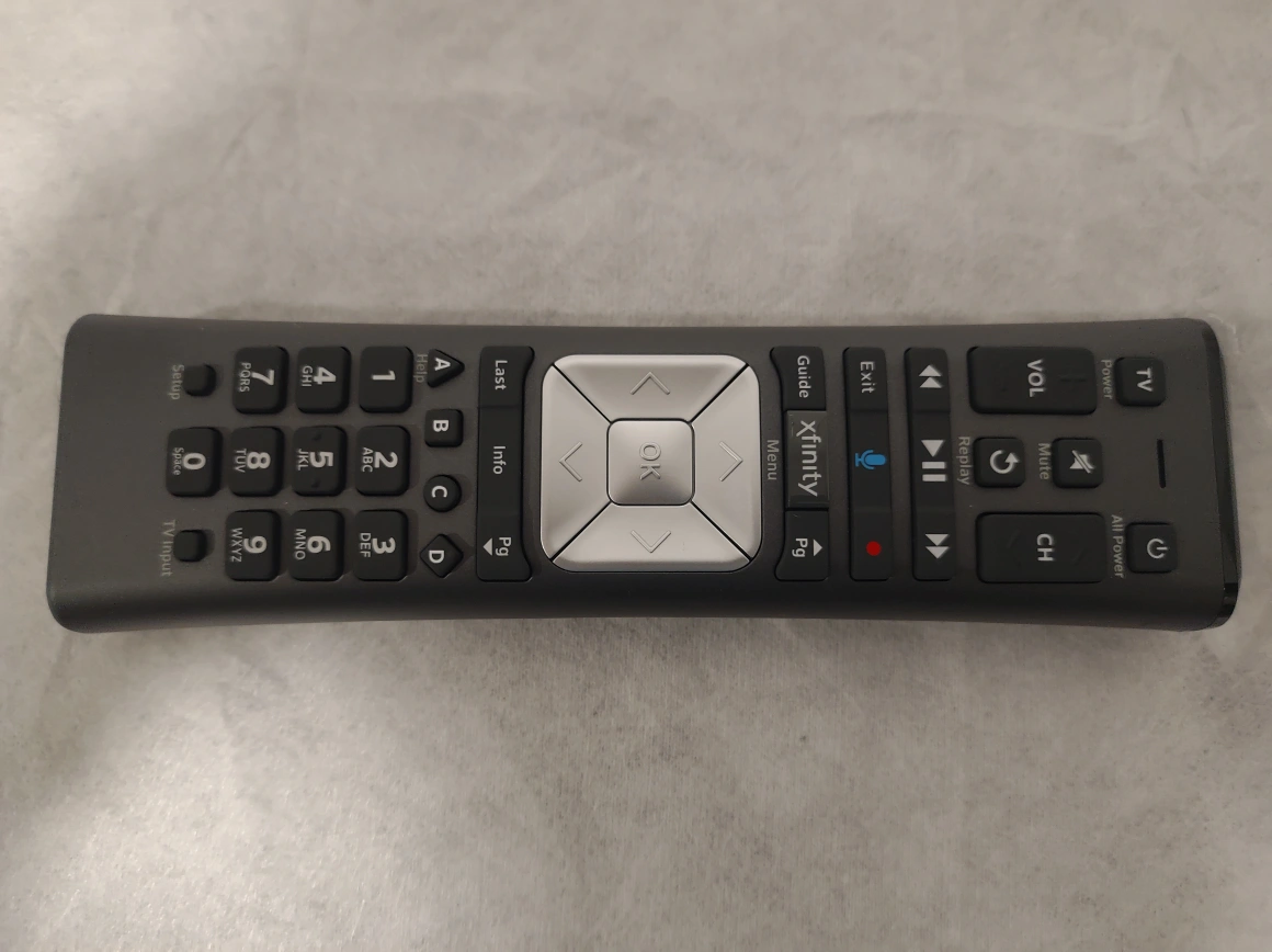44Remote control for Xfinity cable box. Includes all standard buttons, navigation buttons, and voice activation.