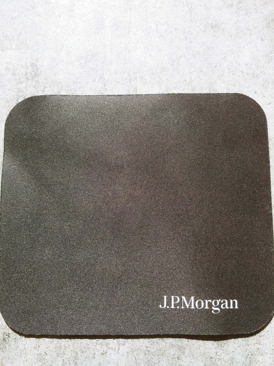 Black mousepad with J.P. Morgan logo. Free with the purchase of one of my items or $3 on its own.