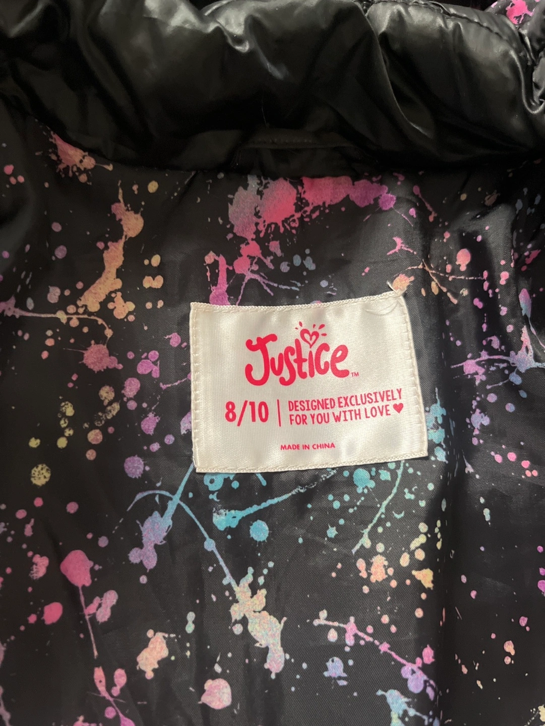 Justice Girls Black Puffer Jacket Size 8/10
