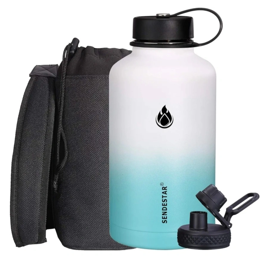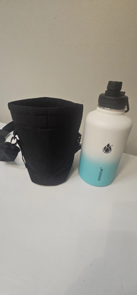 25964oz Water bottle double wall vacuum insulated with a carrying case. Ombre design. White with blue ombre. Only 1 lid. The lid in the second picture Pick up at Yonge & Steeles
