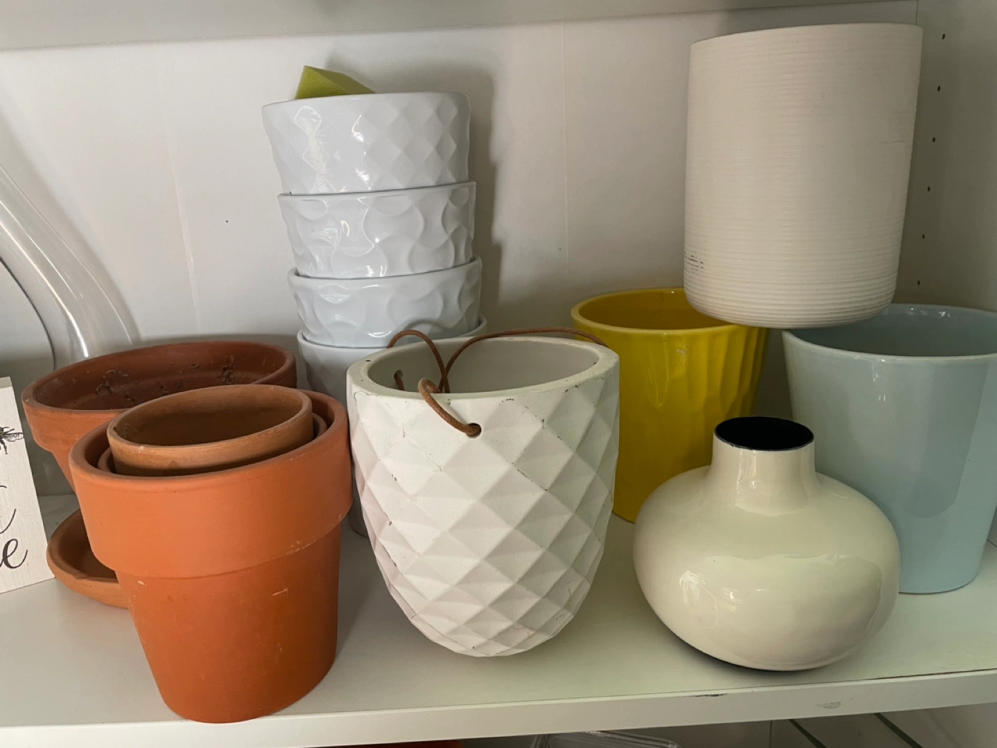 20Various shapes and colors of flowers vases. Prices vary $8-$12.