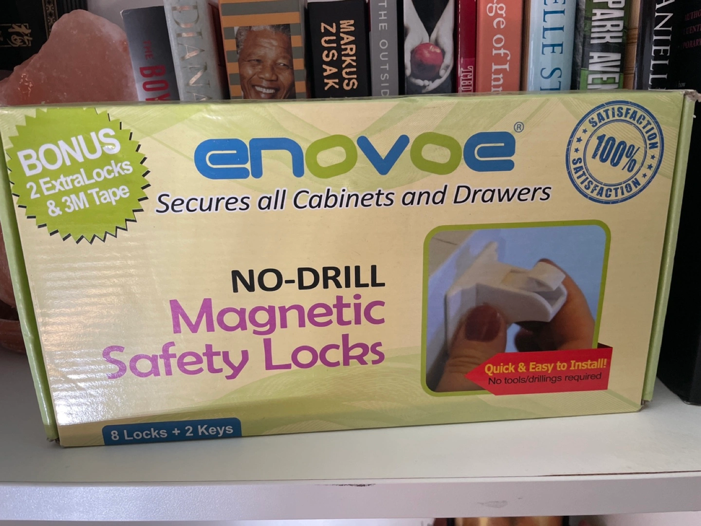 20Magnetic safety locks for cabinets and drawers. Includes 2 locks and tape (as shown in the picture). Quick and easy to install, no drilling required.