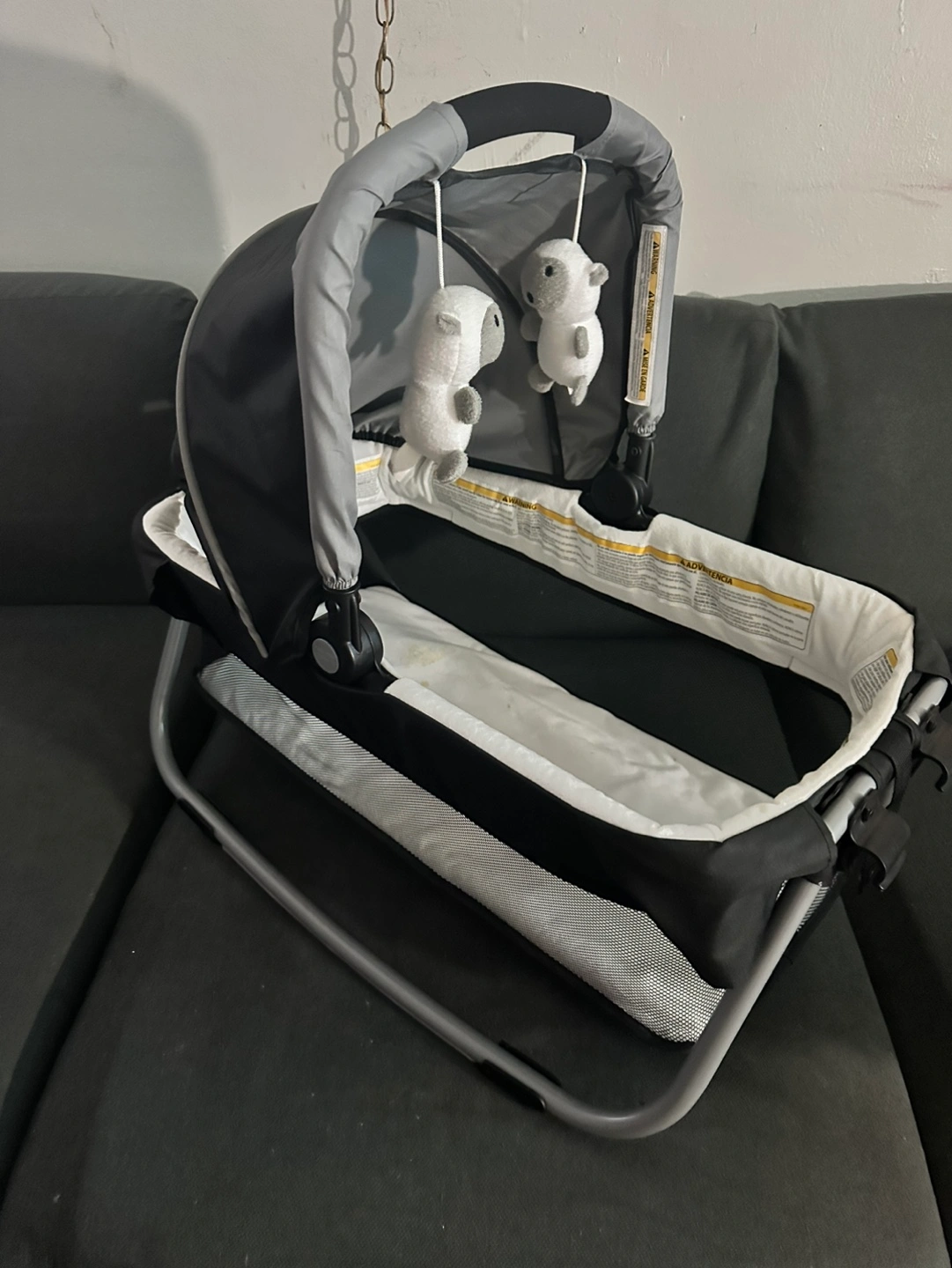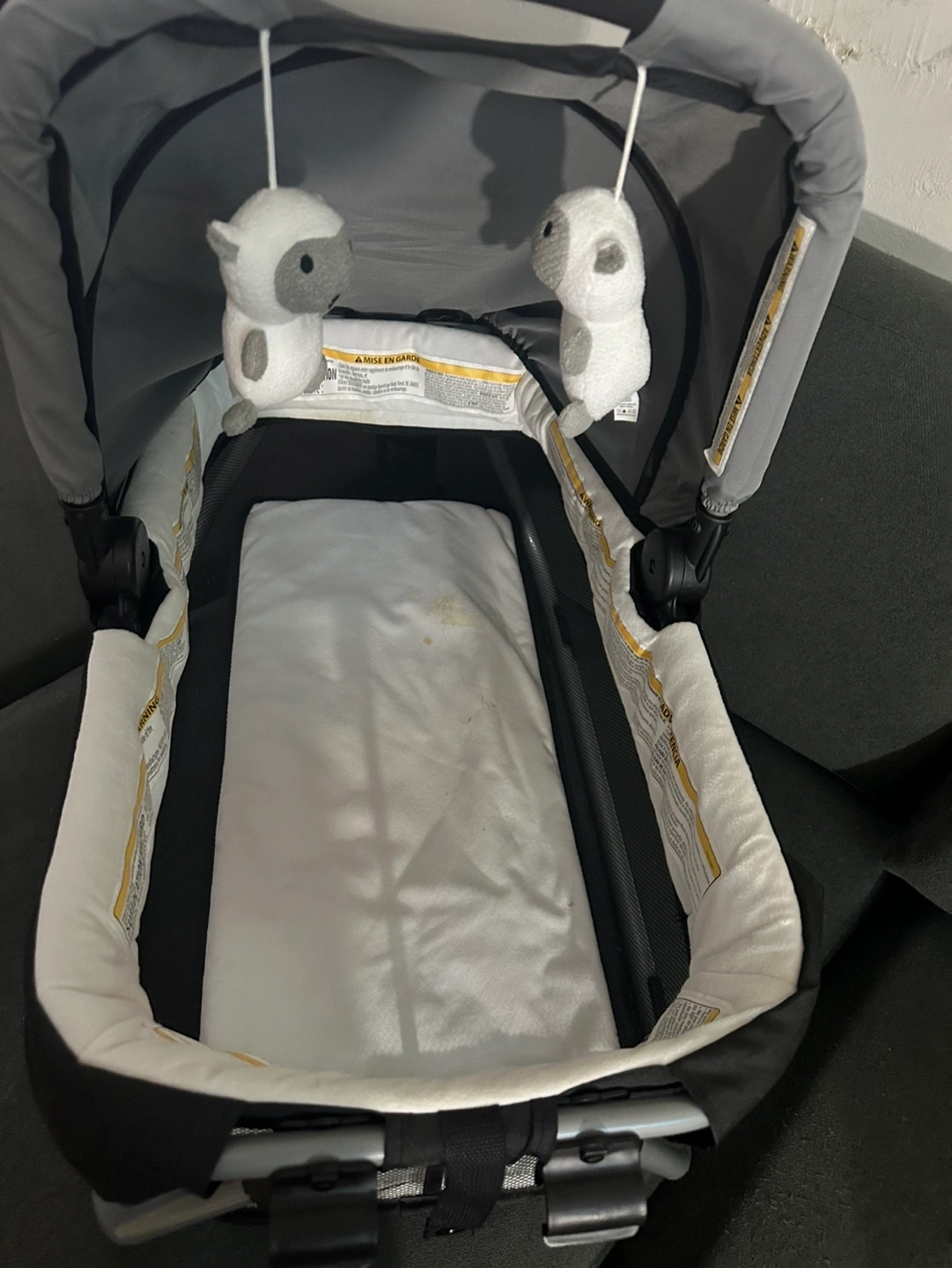 704Need gone by today!!!Baby bassinet with canopy. Includes two hanging toys. Good condition will wipe down before selling!