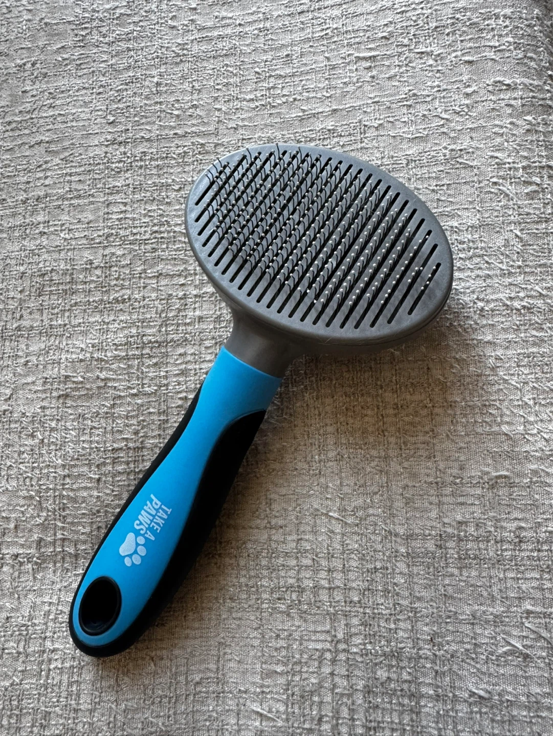 This slicker brush is designed for pets. It features a self-cleaning mechanism for easy hair removal. Perfect for grooming your furry friend!
