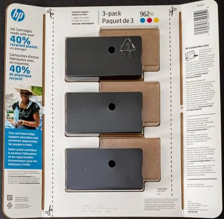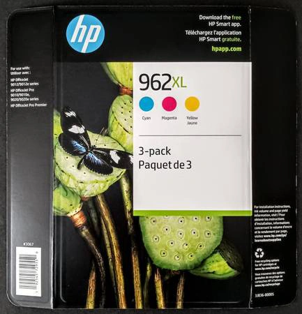 HP 962XL High Yield Ink Cartridge, Tri-Color Pack Is Brand New Features: Printer Compatibility: For use with: HP OfficeJet 9012/9012e series HP OfficeJet Pro 9010/9010e, 9020/9020e series HP OfficeJet Pro Premier 2x More Pages Compared to Standard Cartridges HP 962XL Yield Approx. 1,600 Pages per Cartridge Includes 3 New Cartridges: 1 HP 962XL Cyan, 1 HP 962XL Magenta, 1 HP 962XL Yellow