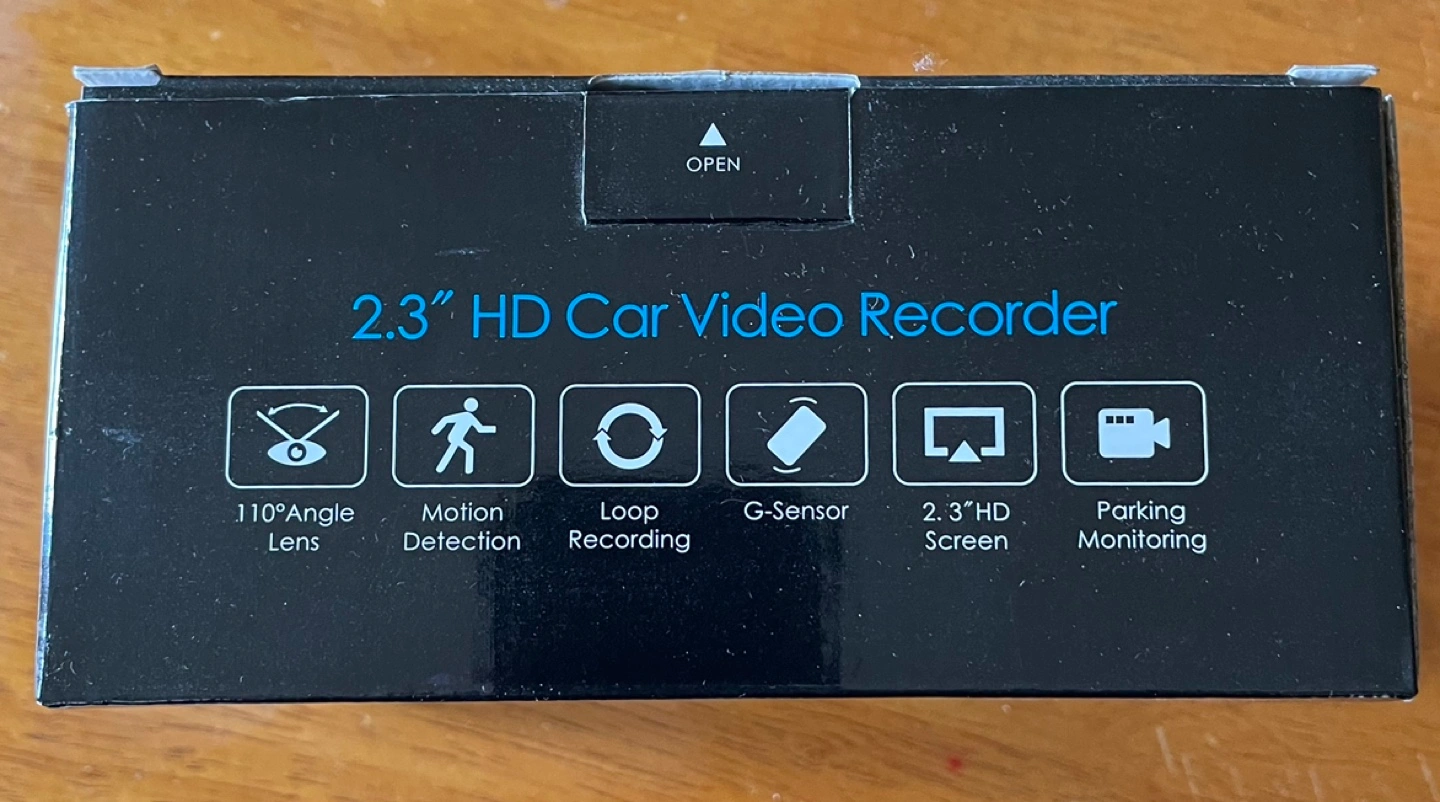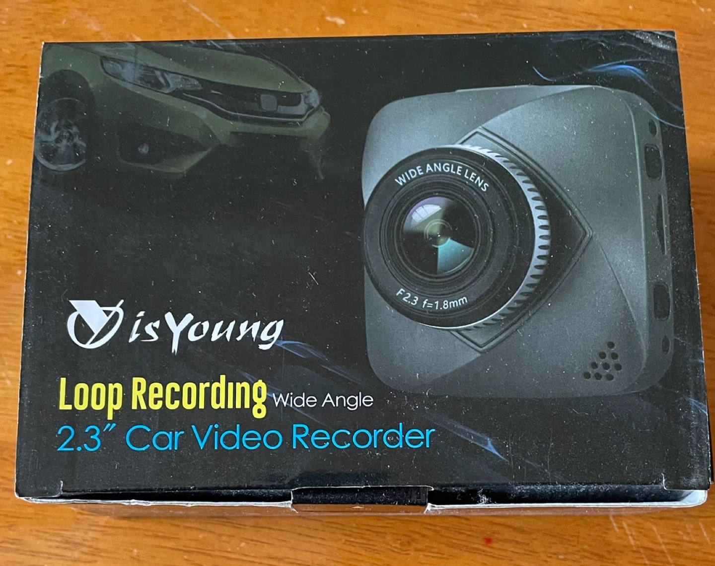2.3" HD Car Video Recorder with wide angle lens and loop recording. Includes motion detection, G-sensor, and parking monitoring.