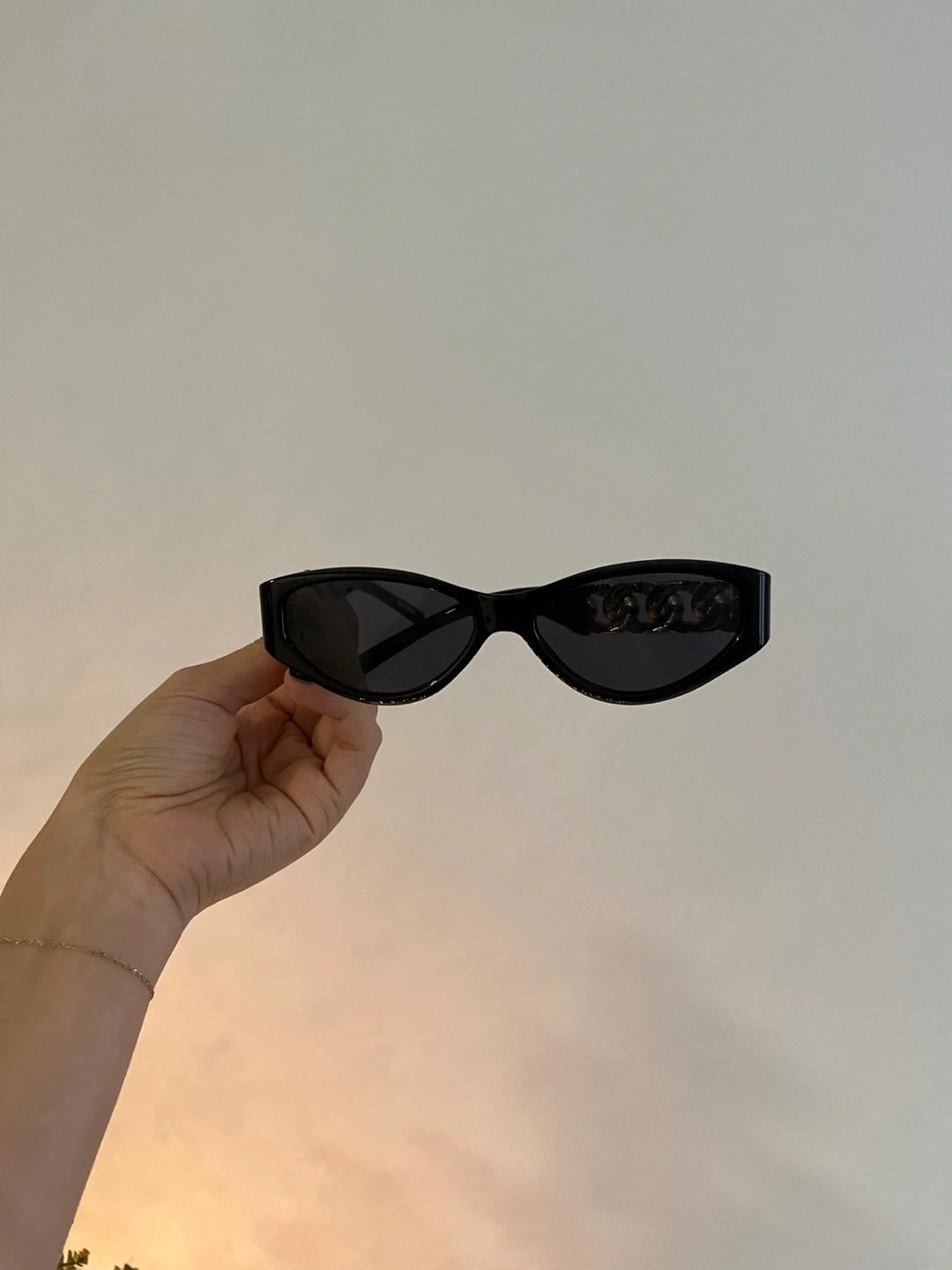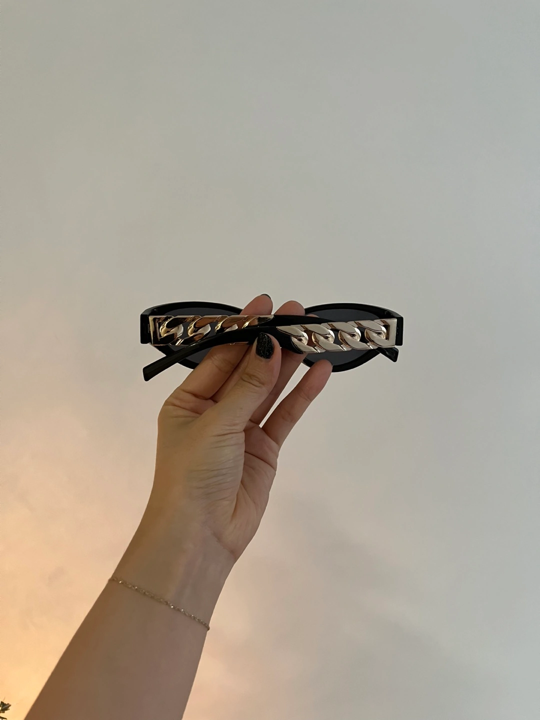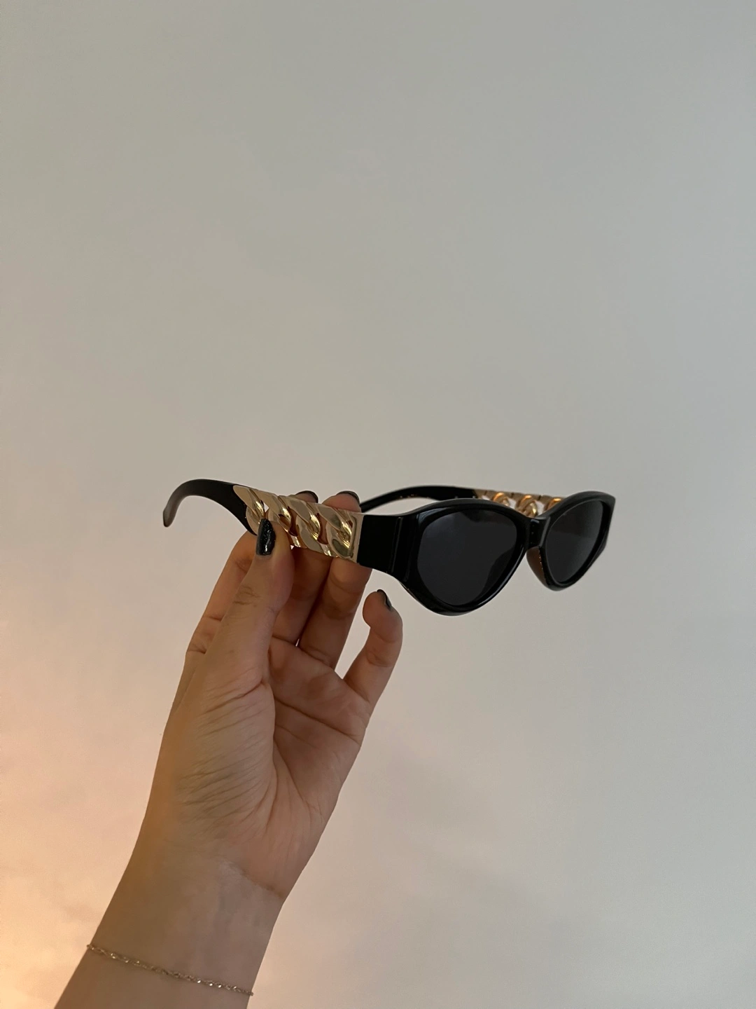 Black Cat Eye Sunglasses with Gold Chain 🧡