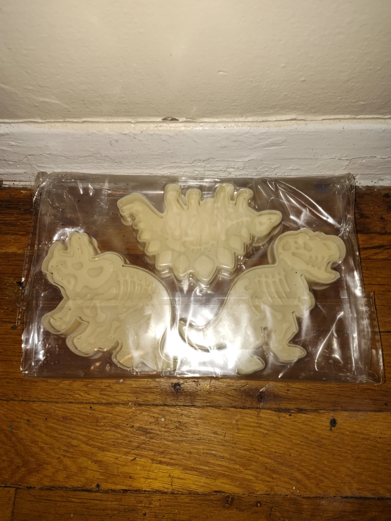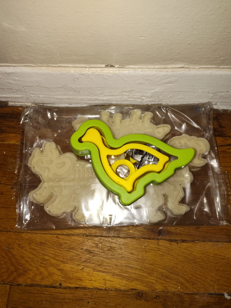 135Set of dinosaur cookie cutters. Includes three different dinosaur shapes.