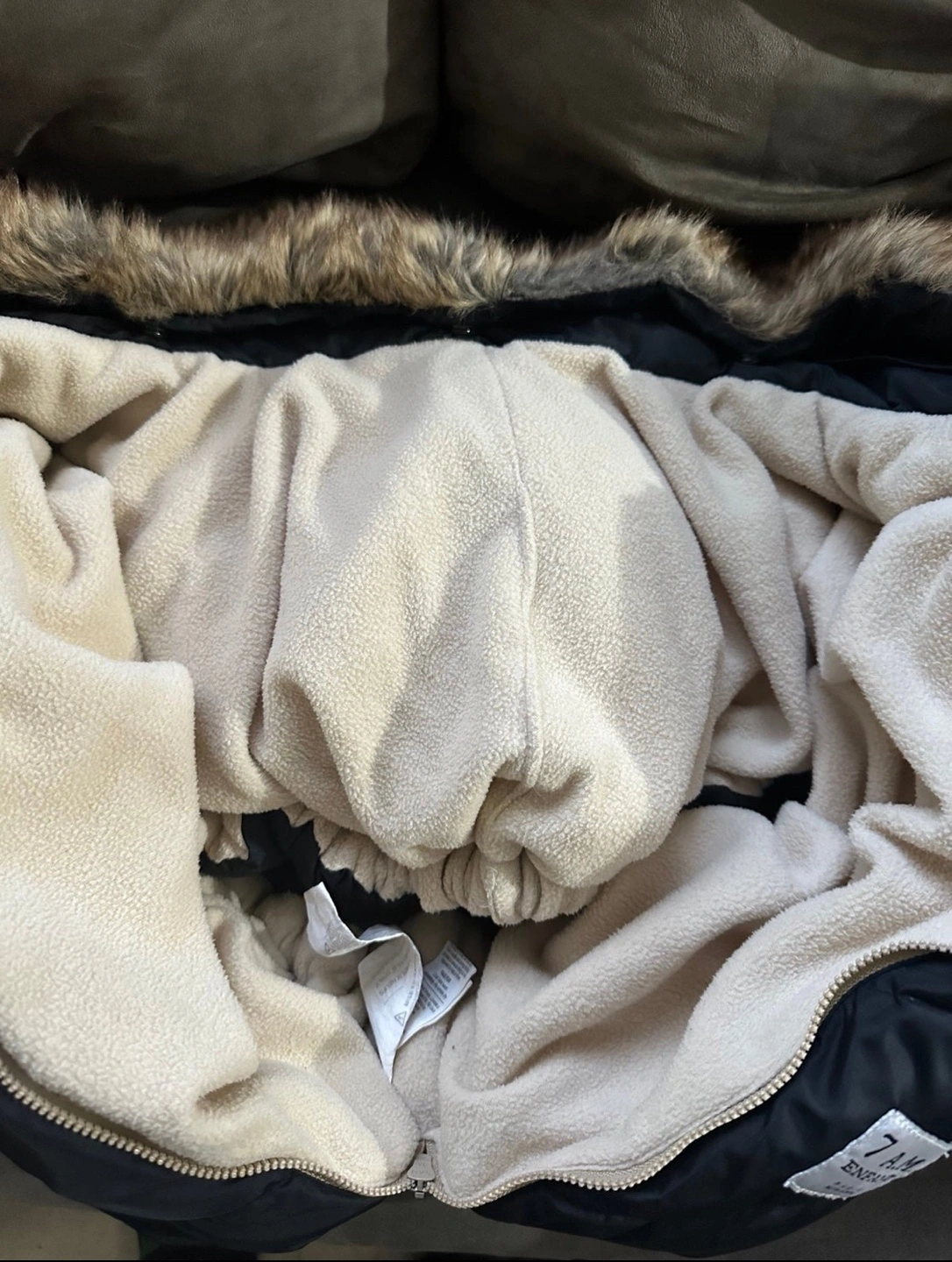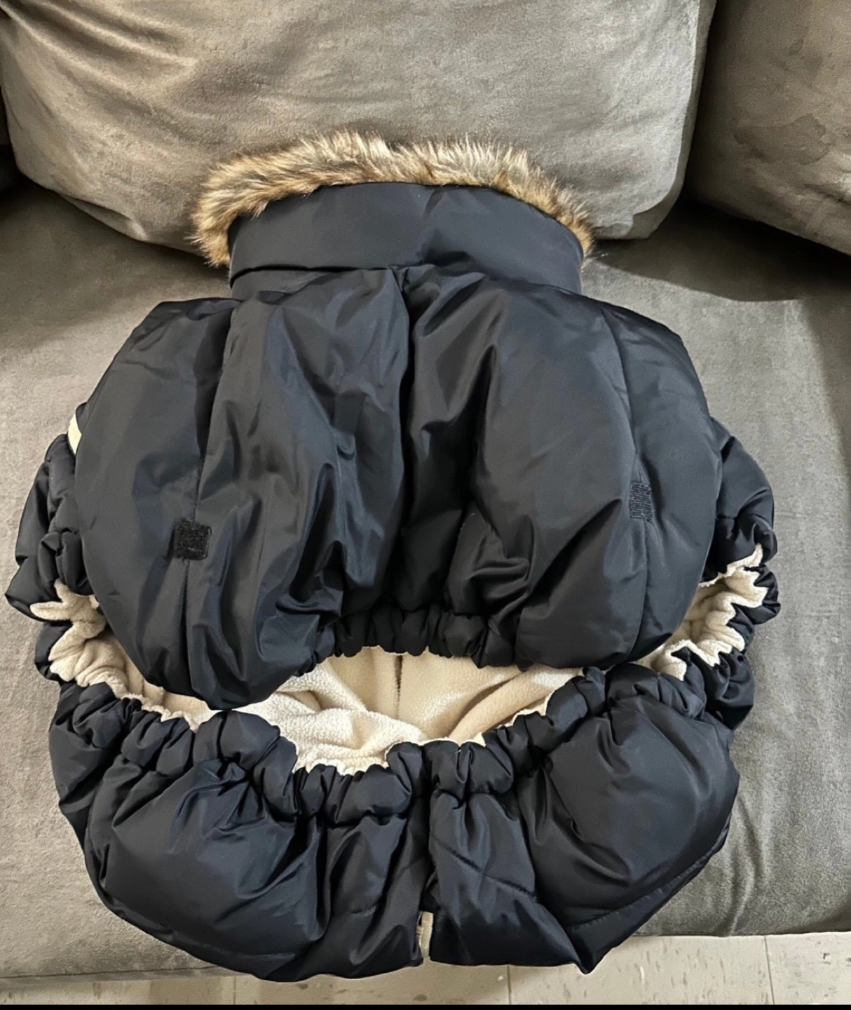 704Black and beige baby winter car seat cover. Fleece lining. Pick up only! UES!