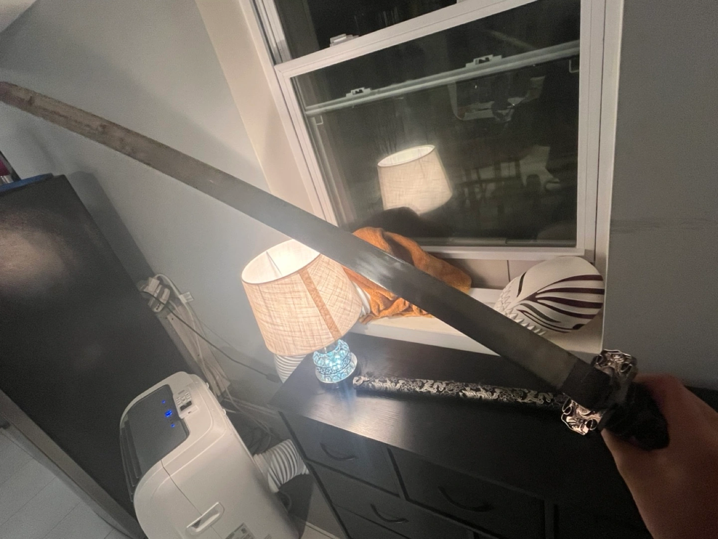 Katana Sword with Black and Silver Design