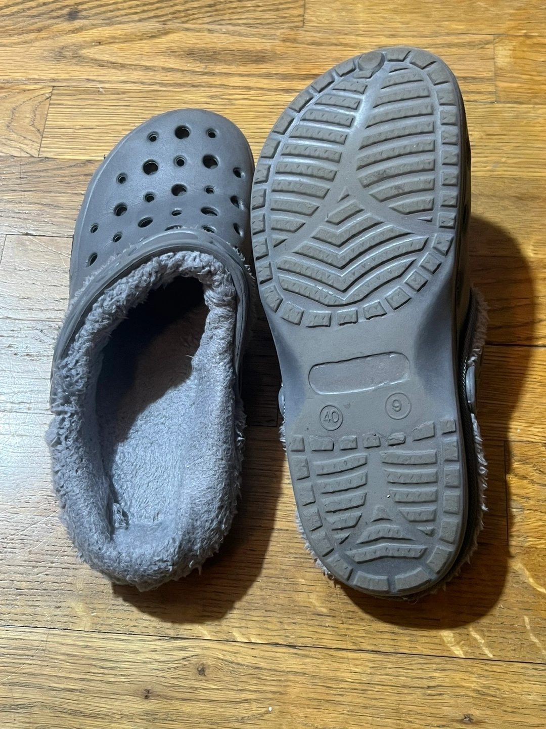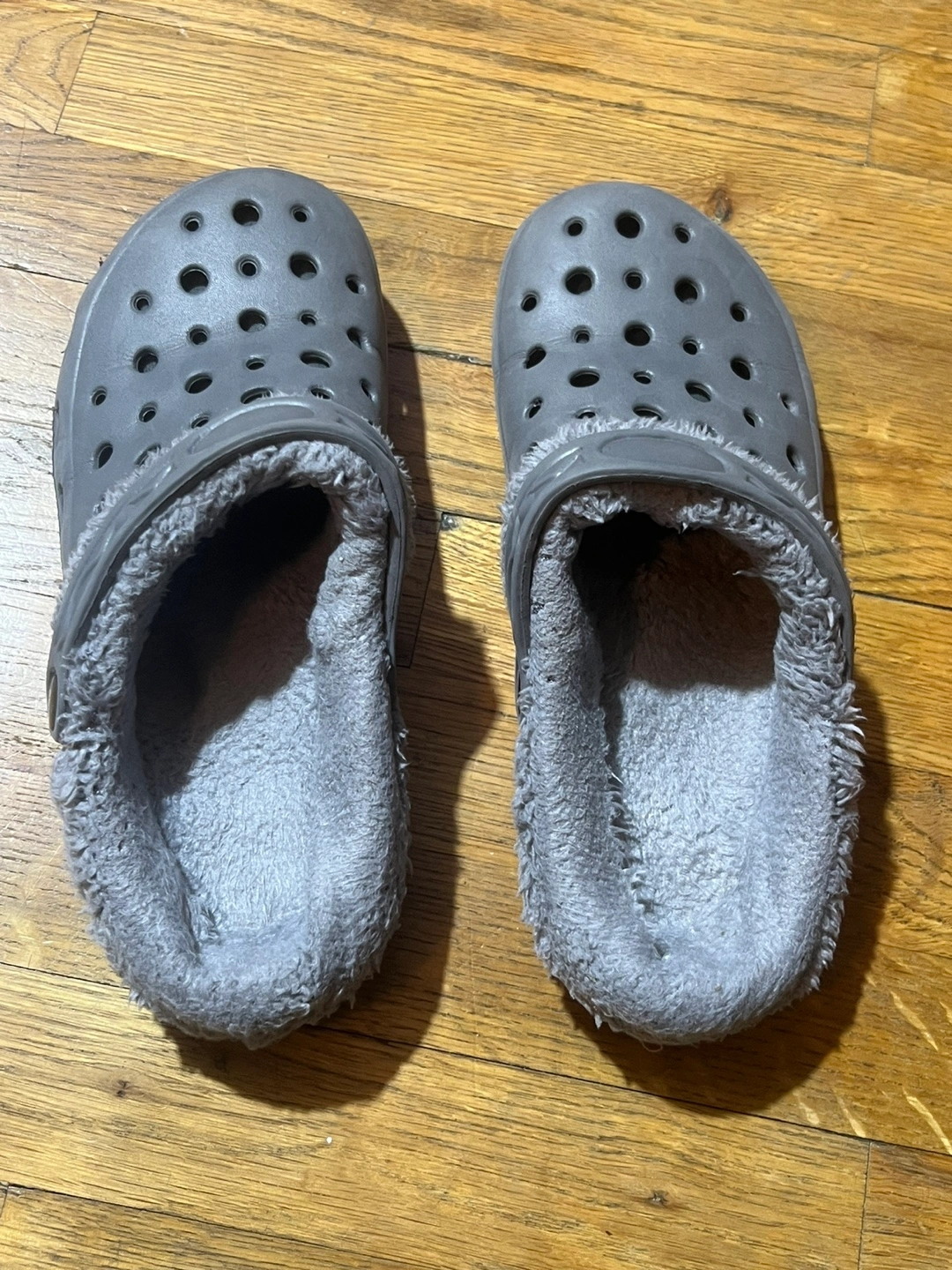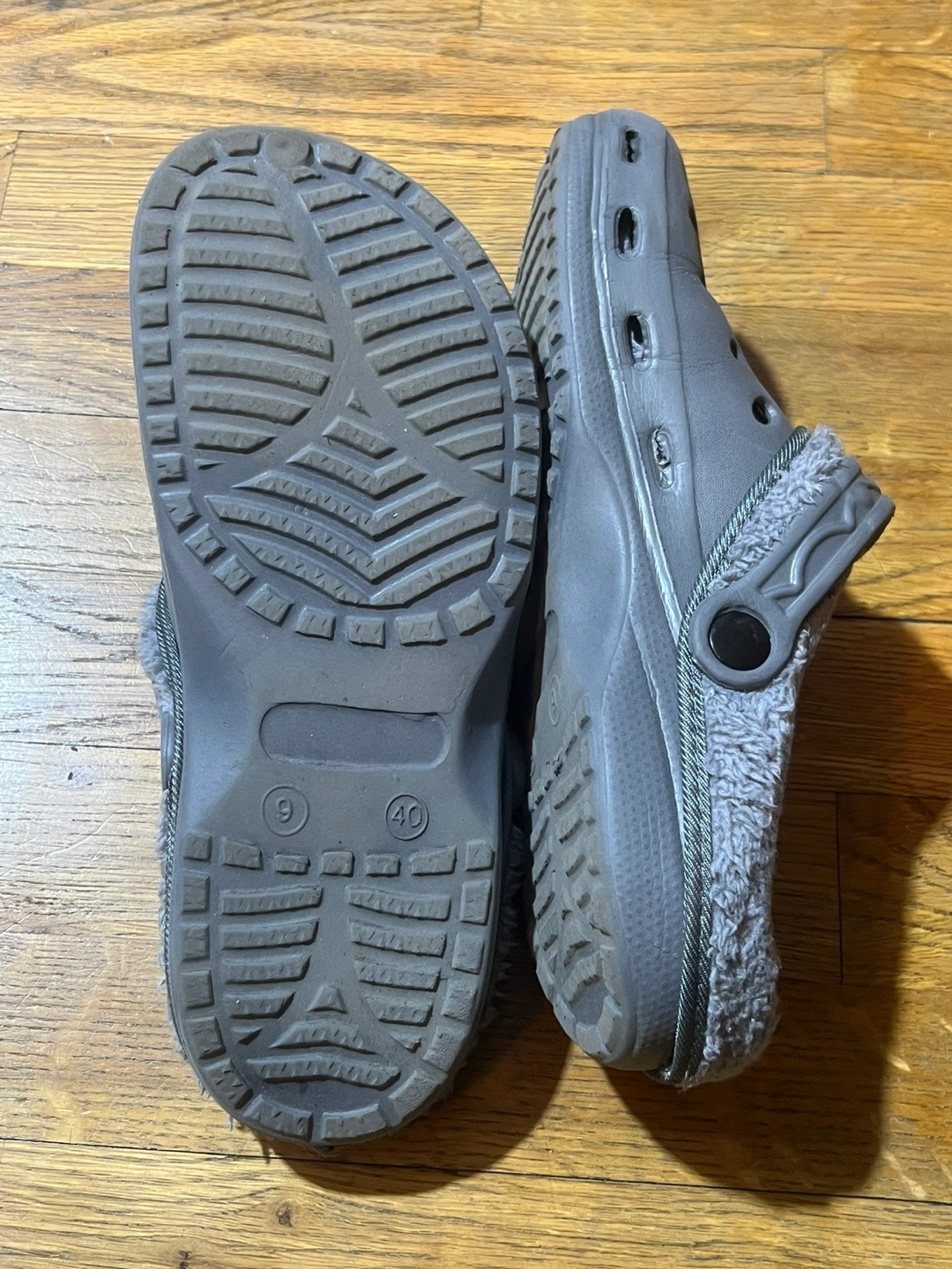 Gray fuzzy lined clogs, size 9. Good condition, can been worn with the heel strap on or without.