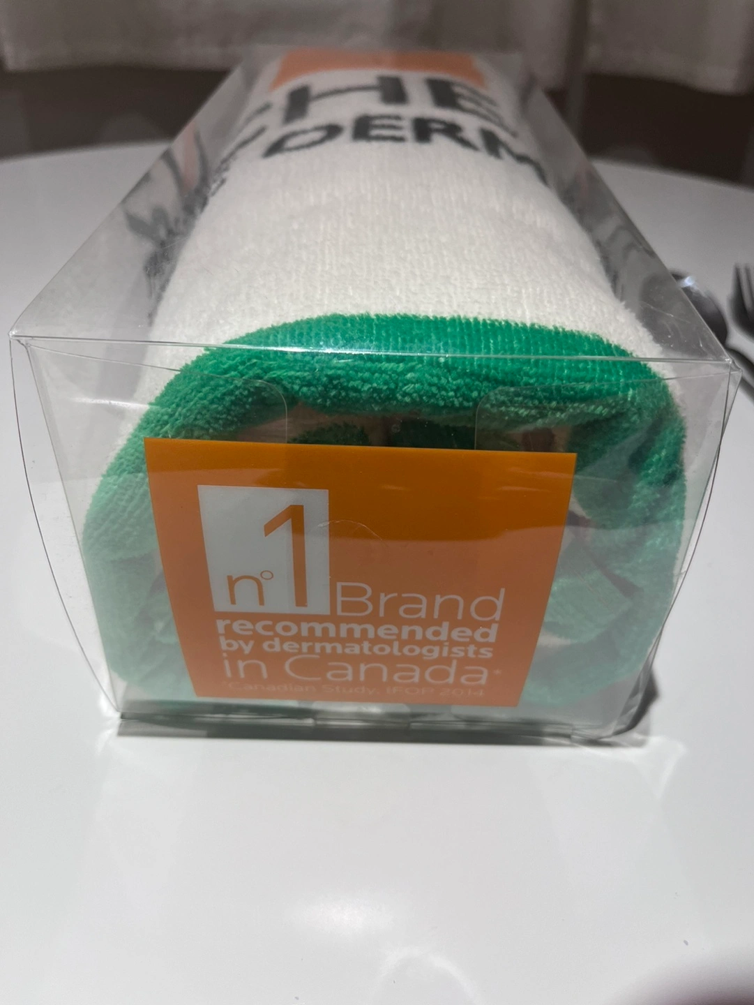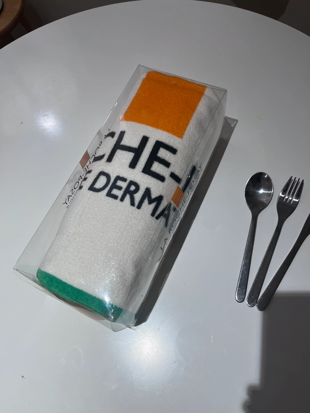 New, large unused towel. La Roche-Posay brand, packaged in a clear plastic case.