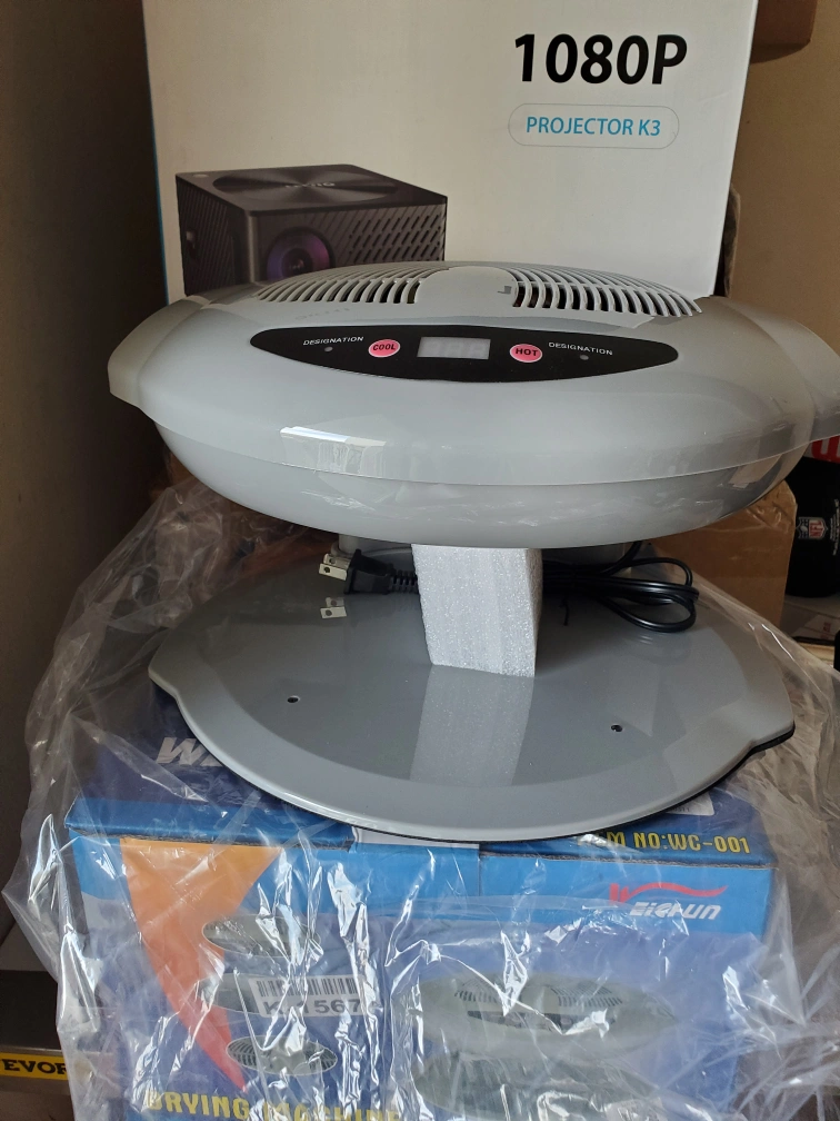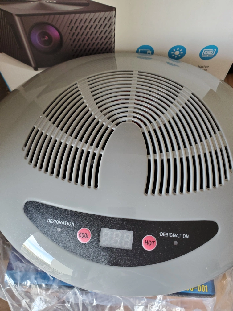 Grey nail dryer with adjustable wind modes. Hot and cold wind.