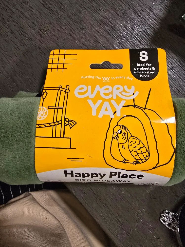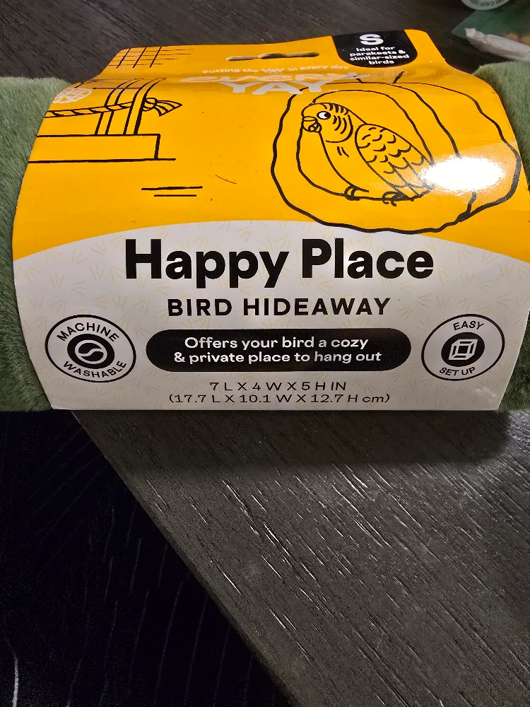 Green plush bird hideaway. Machine washable. Offers your bird a cozy and private place to hang out.