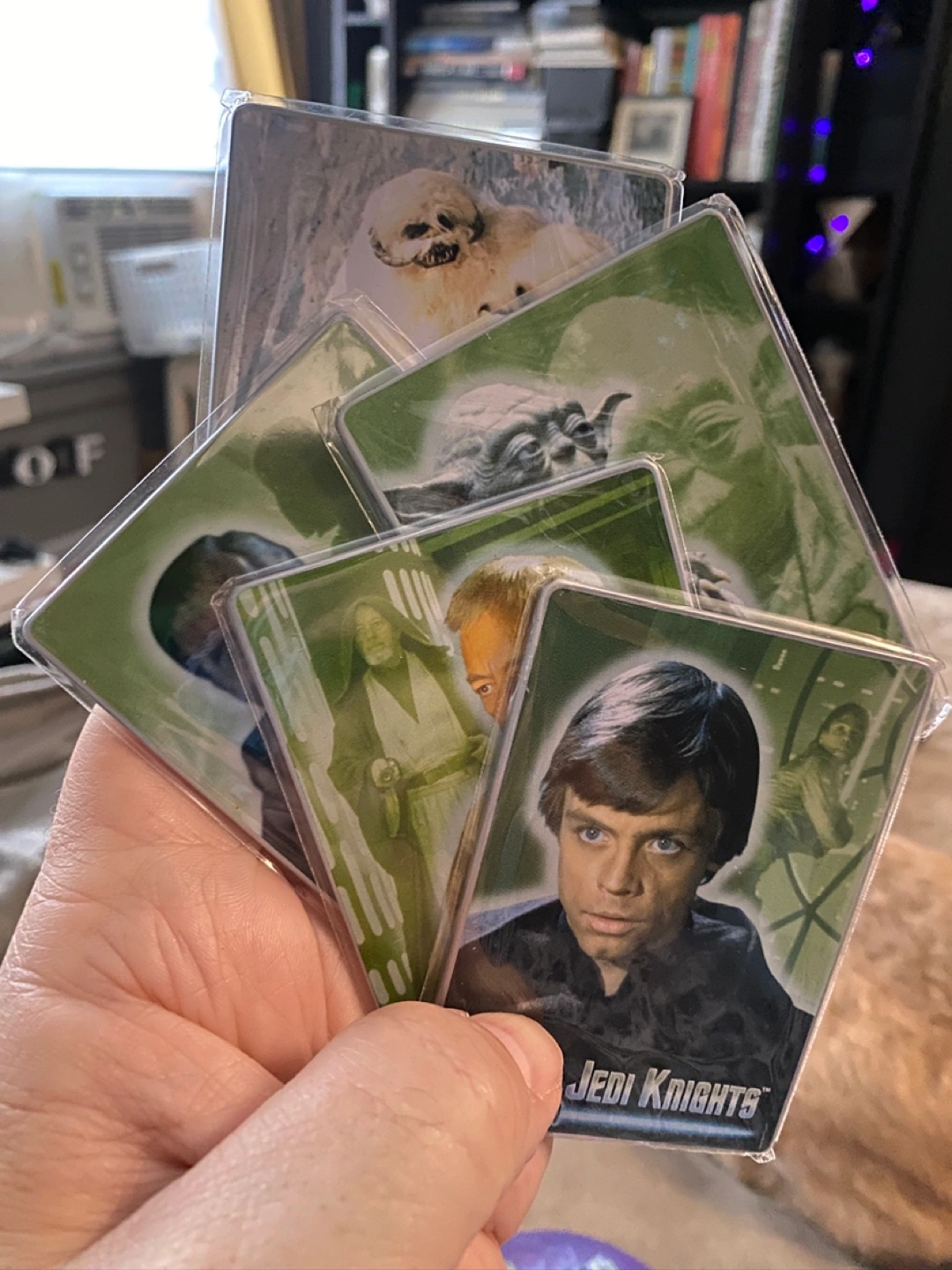 328Set of 5 collectible cards in a single tin. Includes Luke Skywalker, Yoda, and more. In excellent condition with original packaging. I can also add a vintage C3-P0 and R2-D2 bookmark at no additional cost. Cash or Zelle preferred and pickup on Astoria Blvd South and 38th Street.