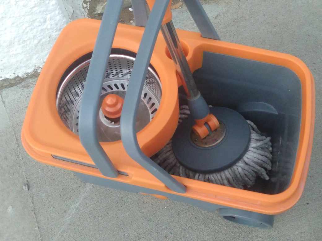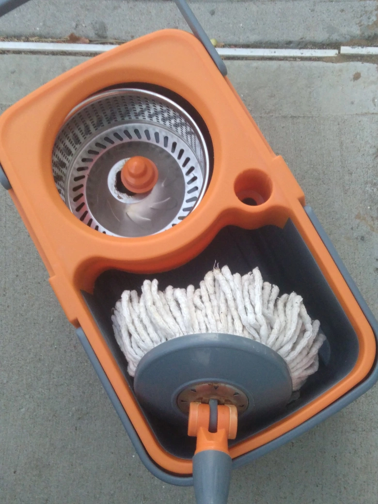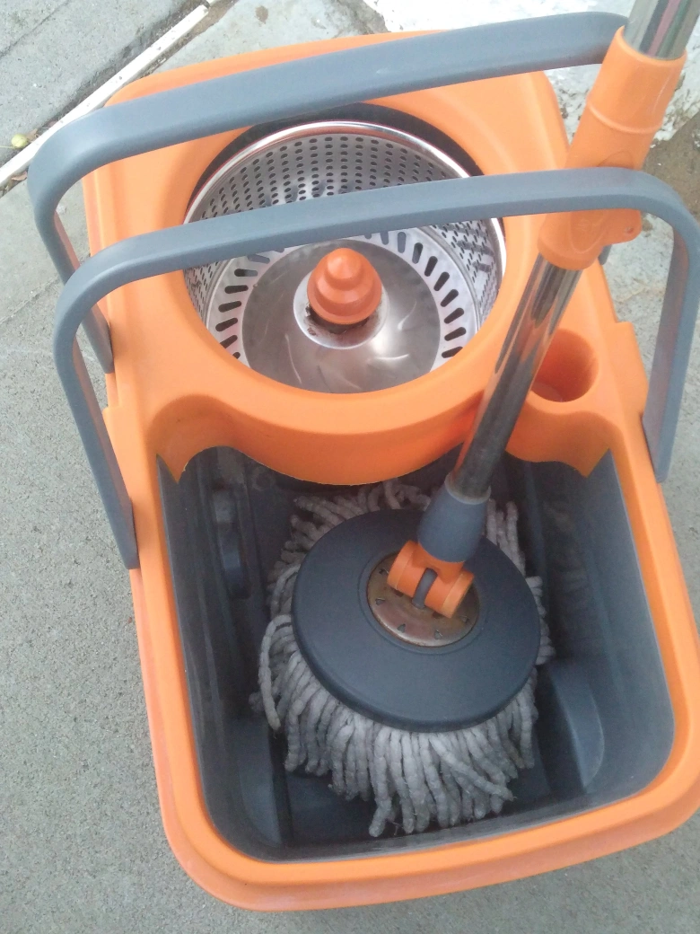 1000+Orange and grey spin mop with a handle and a bucket. Includes a mop head. pickup is in Astoria Queens