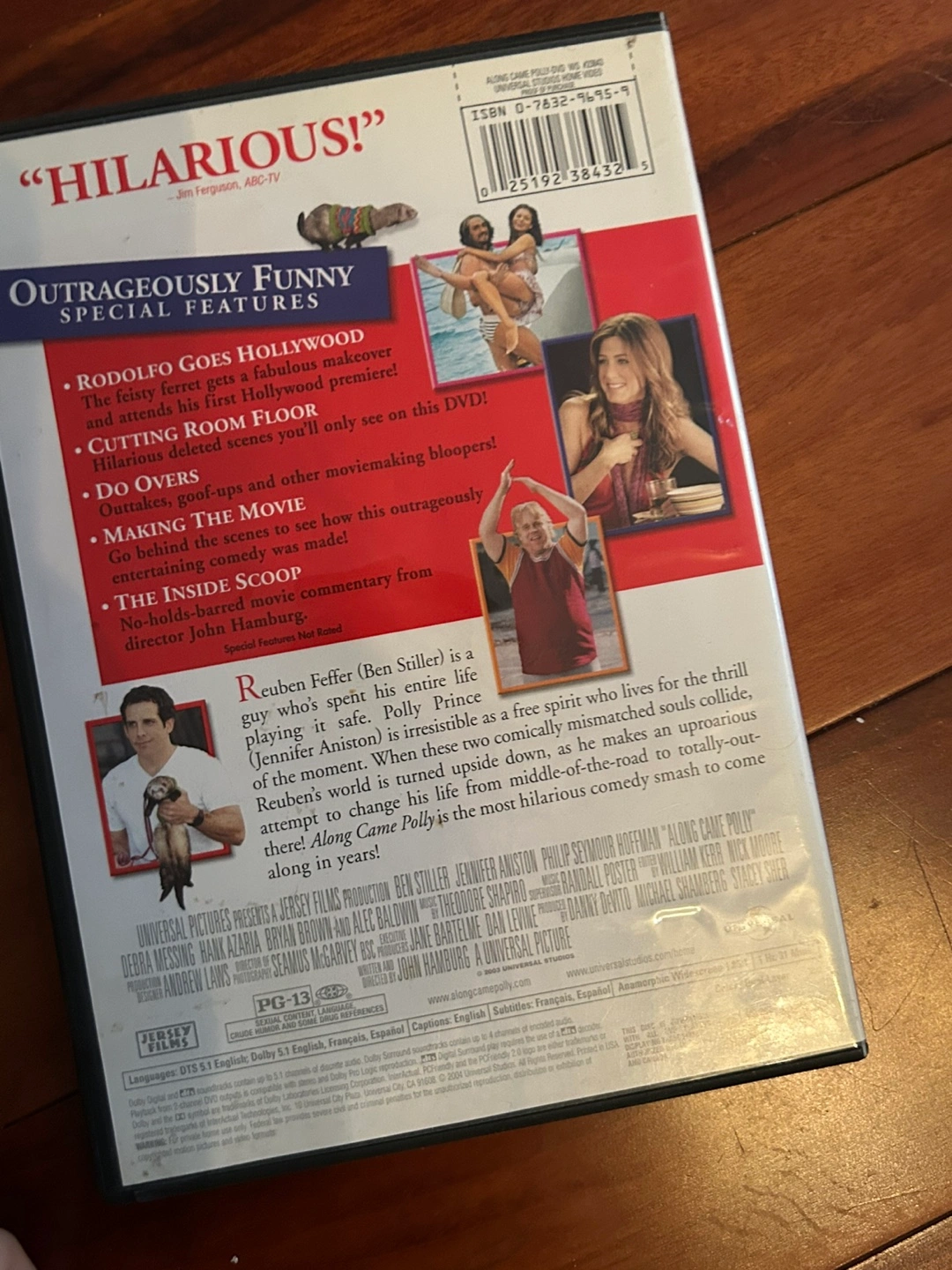 DVD of the movie Along Came Polly starring Ben Stiller and Jennifer Aniston. Widescreen. Includes special features.