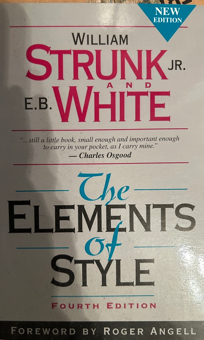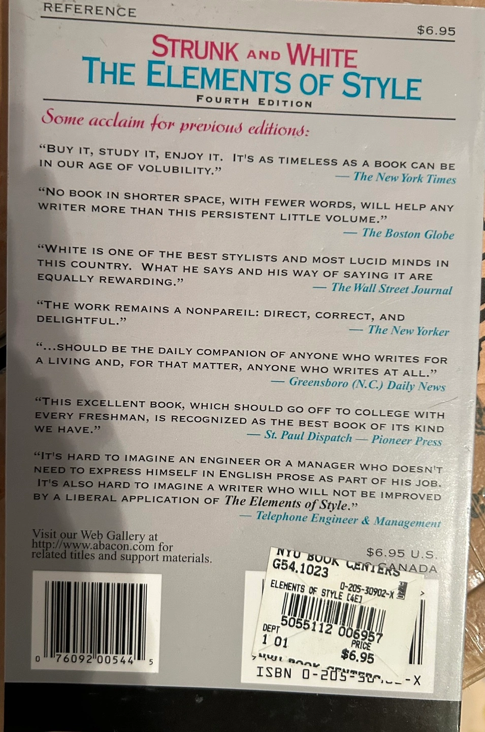 Paperback book by William Strunk Jr. and E.B. White, Fourth Edition. Foreword by Roger Angell. Purchased for: $6.95 Selling for: $3