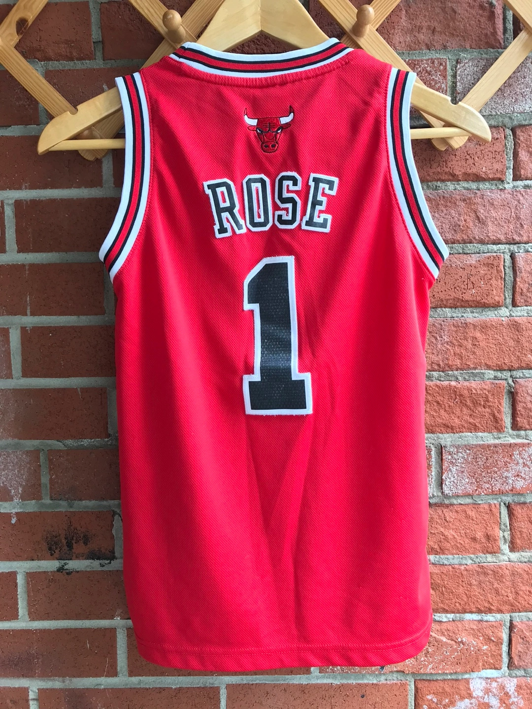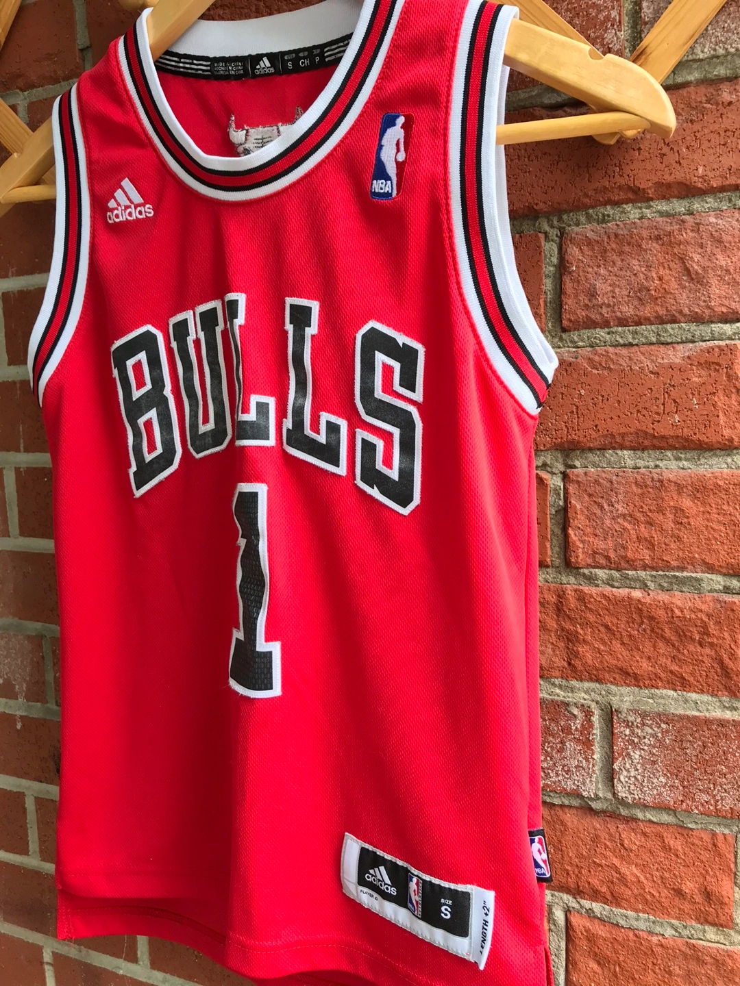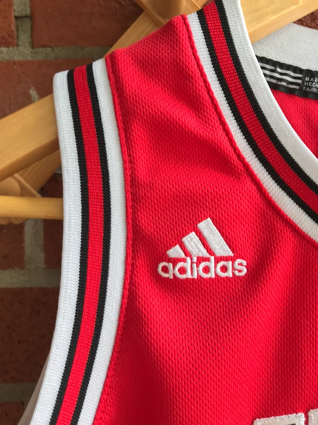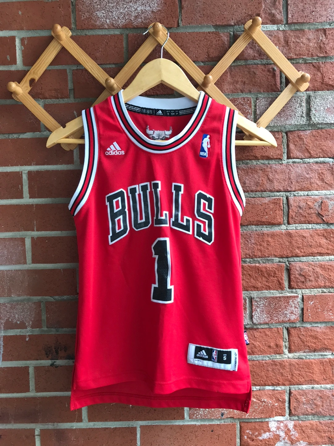 Red Adidas basketball jersey. Chicago Bulls with #1. Rose Size S. Y2K Era