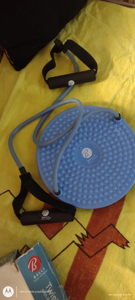 381Twist board with resistance tubing, great for full body workout. Improves agility and balance.