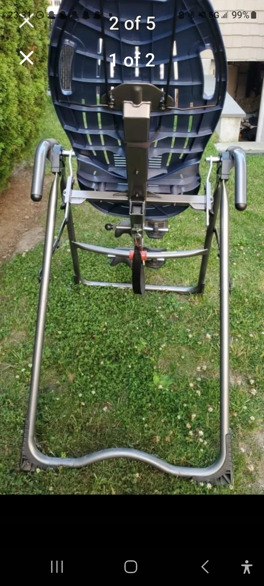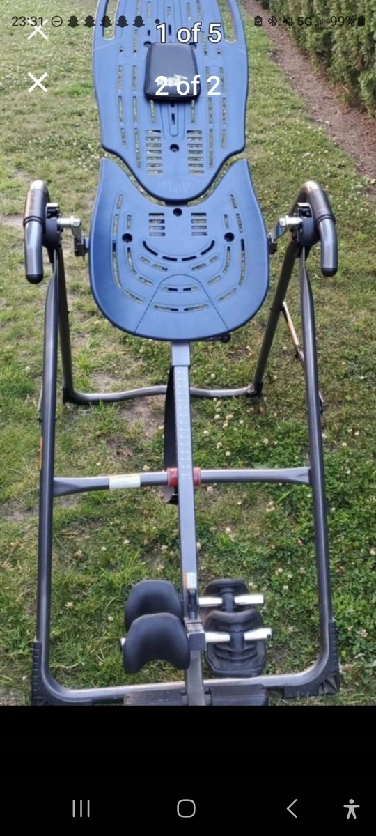 15Inversion Table. Good condition. Includes foot straps and handles. Adjustable height. Comes assembled.