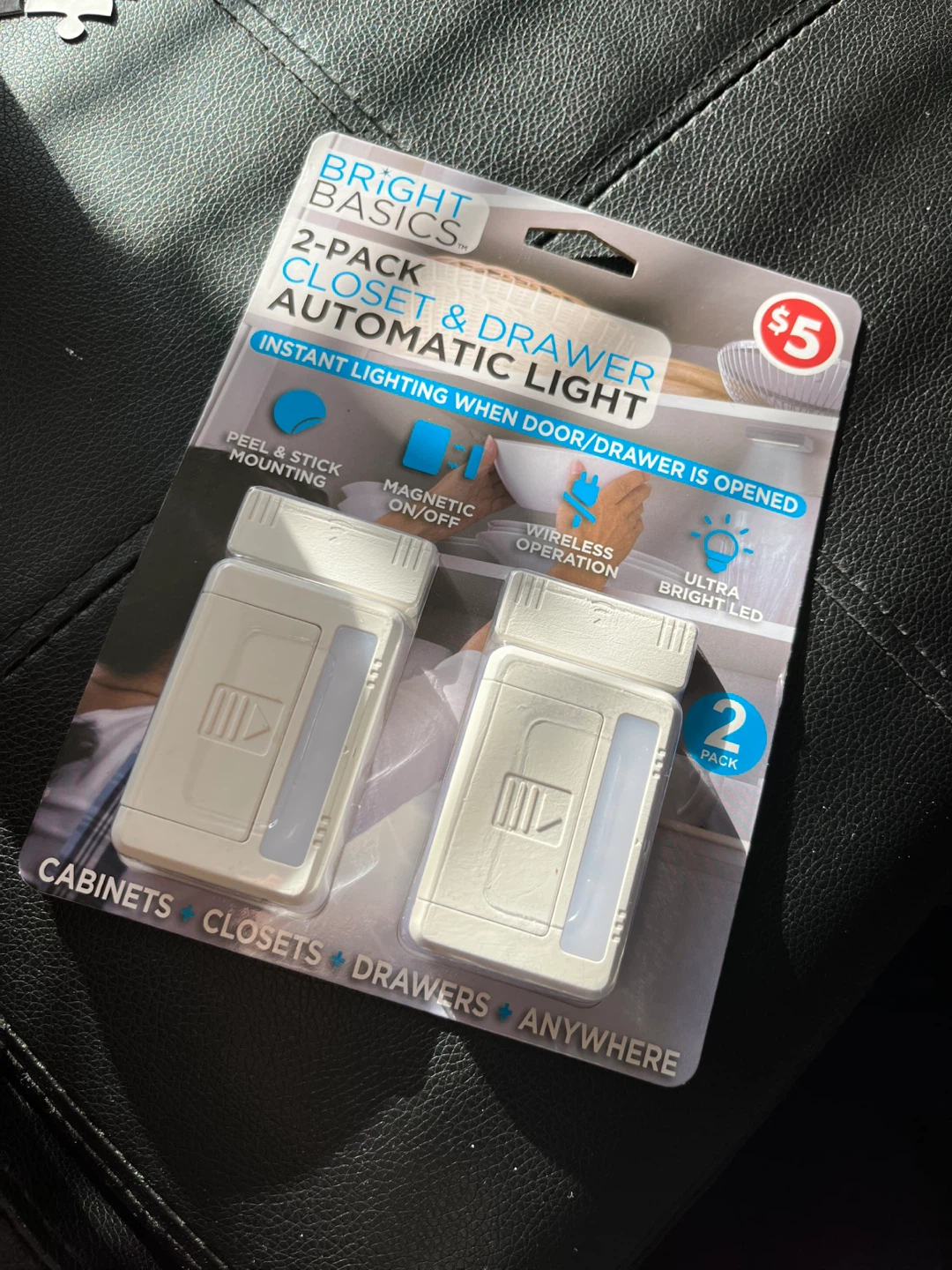 Get instant lighting with this Bright Basics 2-pack of closet and drawer lights! These lights are brand new and feature peel & stick mounting for easy installation. They're magnetic, operate wirelessly, and use ultra-bright LEDs. Perfect for cabinets, closets, drawers, and anywhere else you need a little extra light!