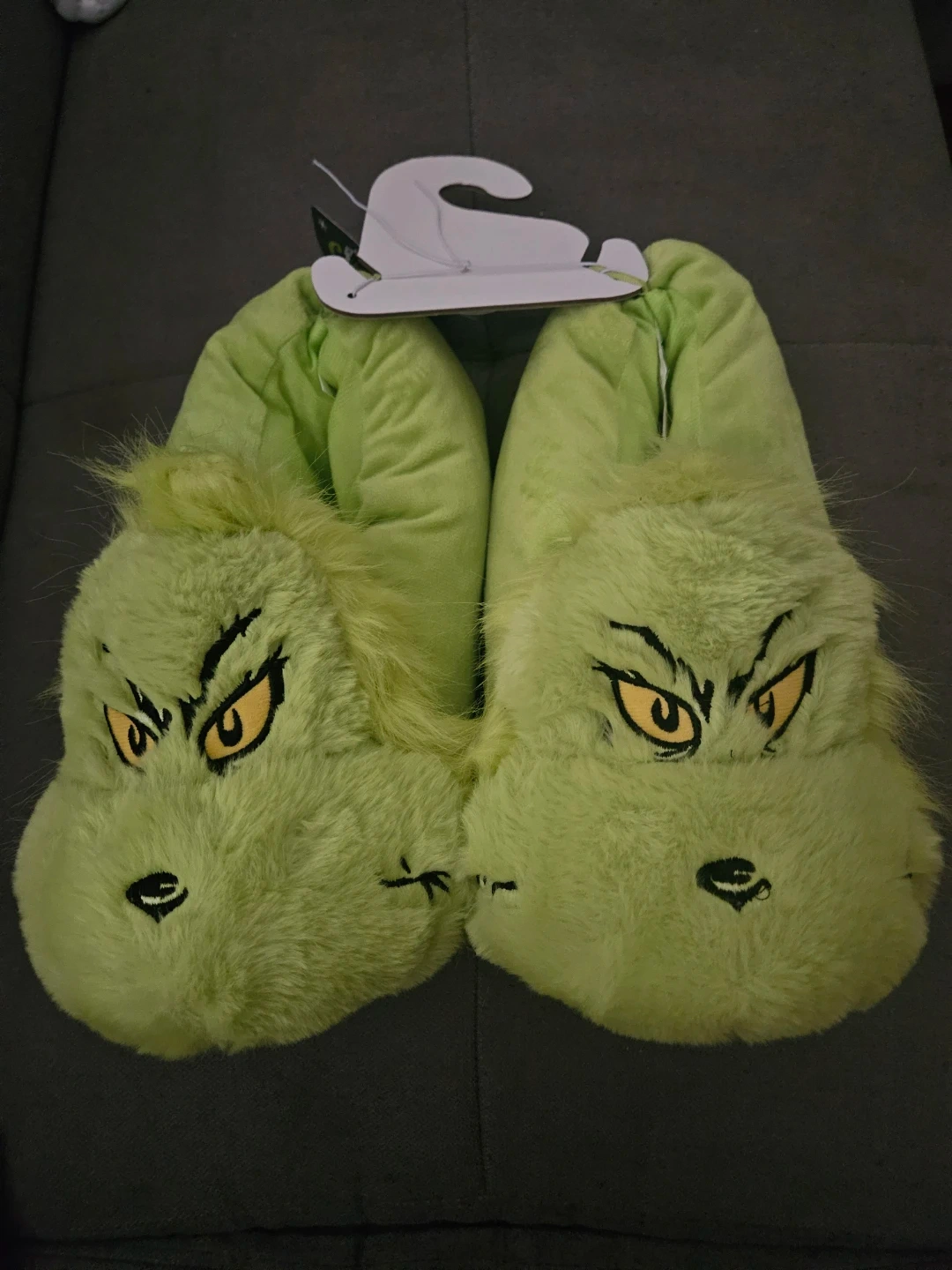Brand new with tags, these adorable Grinch slippers from Primark are looking for a new home! They're a size 11/12 (US sizing) and feature the Grinch's grumpy face. Perfect for keeping your feet warm and cozy this winter!