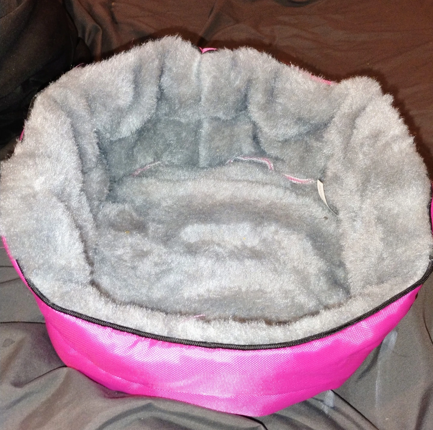 Soft plush pet bed with a comfortable, warm interior. It features a durable, water-resistant pink exterior. Perfect for small dogs or cats! Comes from a smoke free home. In very excellent condition. Pick up in Des Plaines.