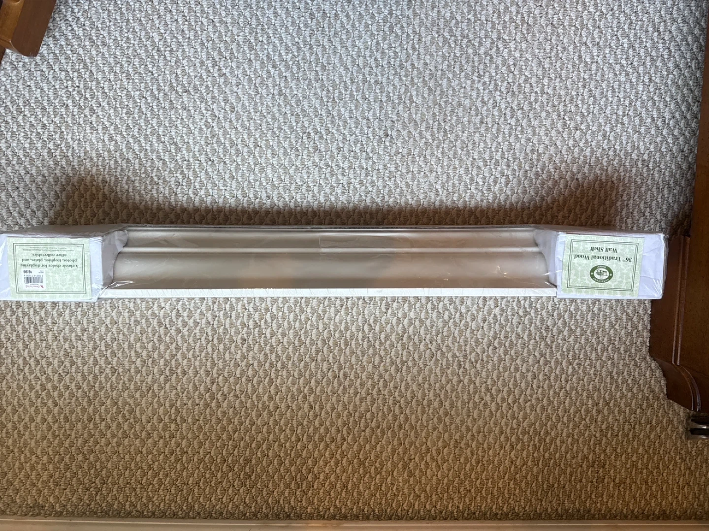 Selling a brand new, still in the package, 36" Traditional Wood Wall Shelf! It's a classic choice for displaying photos, trophies, plates, and other collectables. Originally priced at $19.99