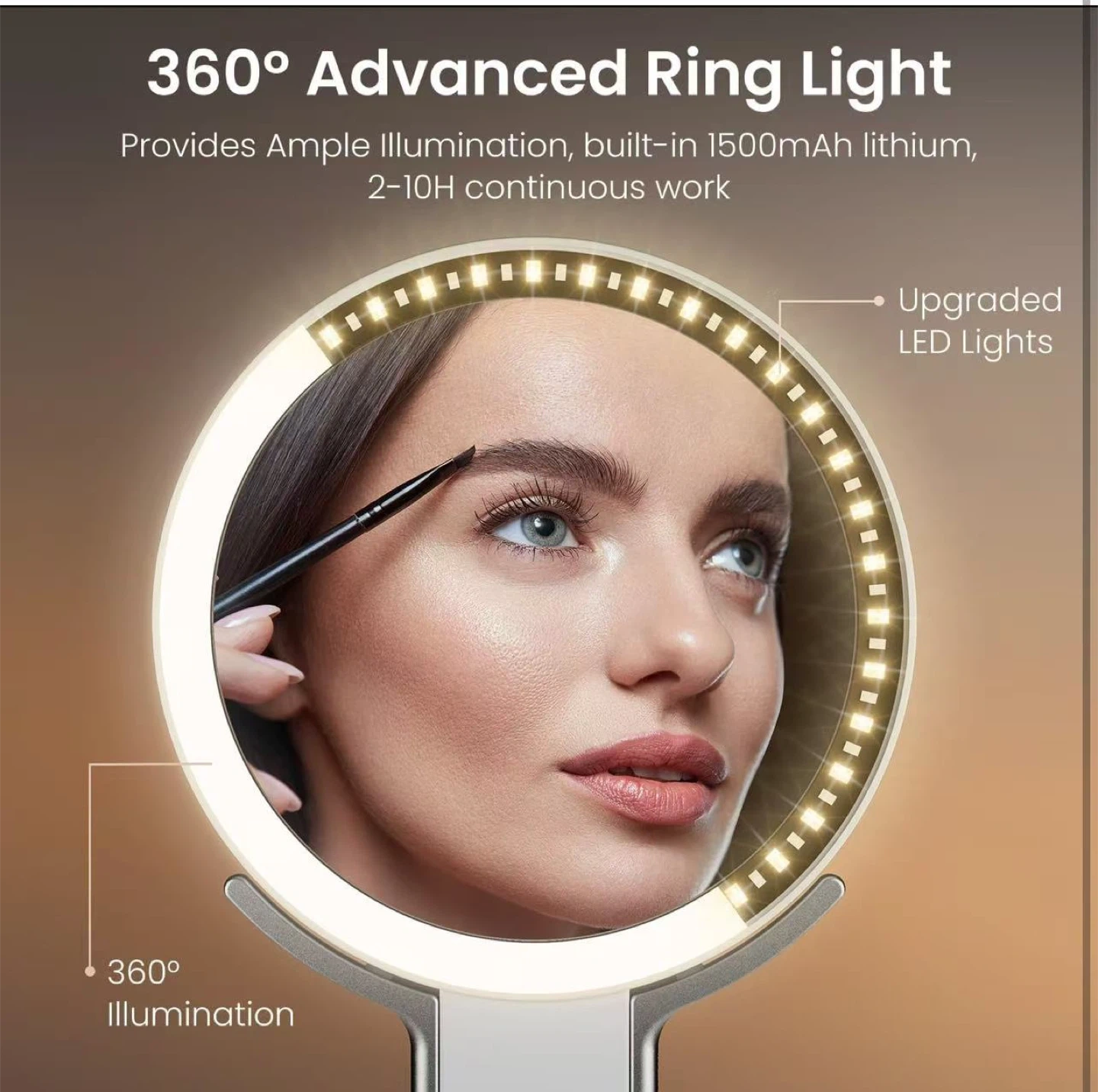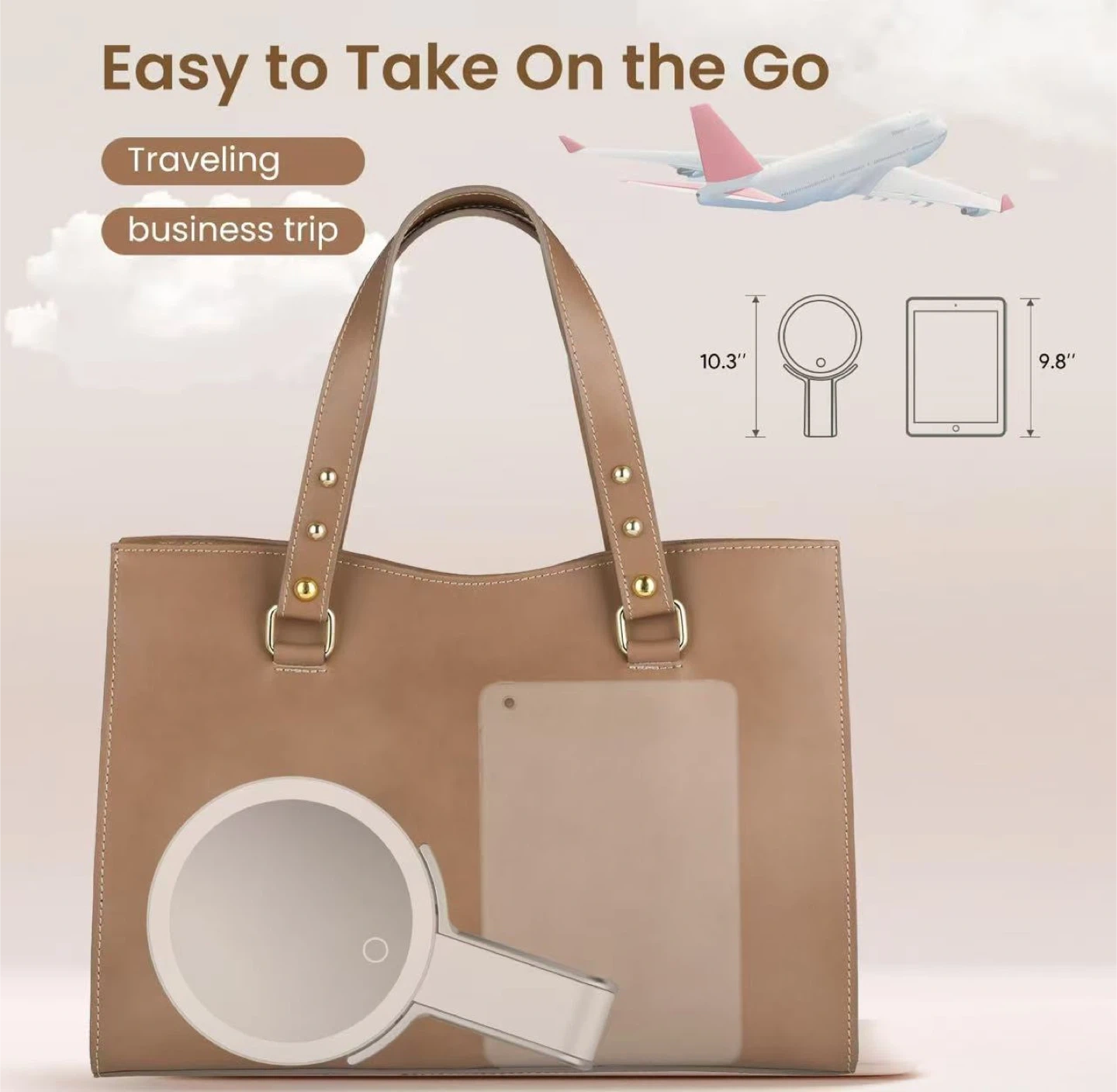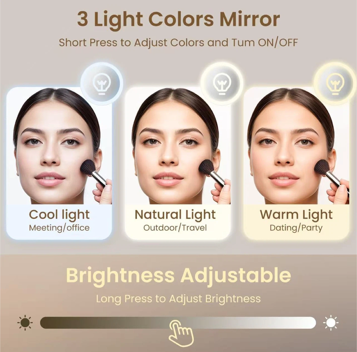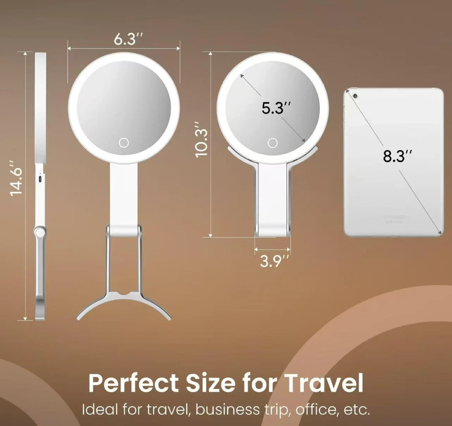 172Travel Makeup Mirror with Light, 10X/ 1X Double Sided Rechargeable Magnifying Mirror with 3 Color Lights Modes, USB Type C Portable LED Mirror Gifts for Women Girls Desktop Hanging Handheld (White)