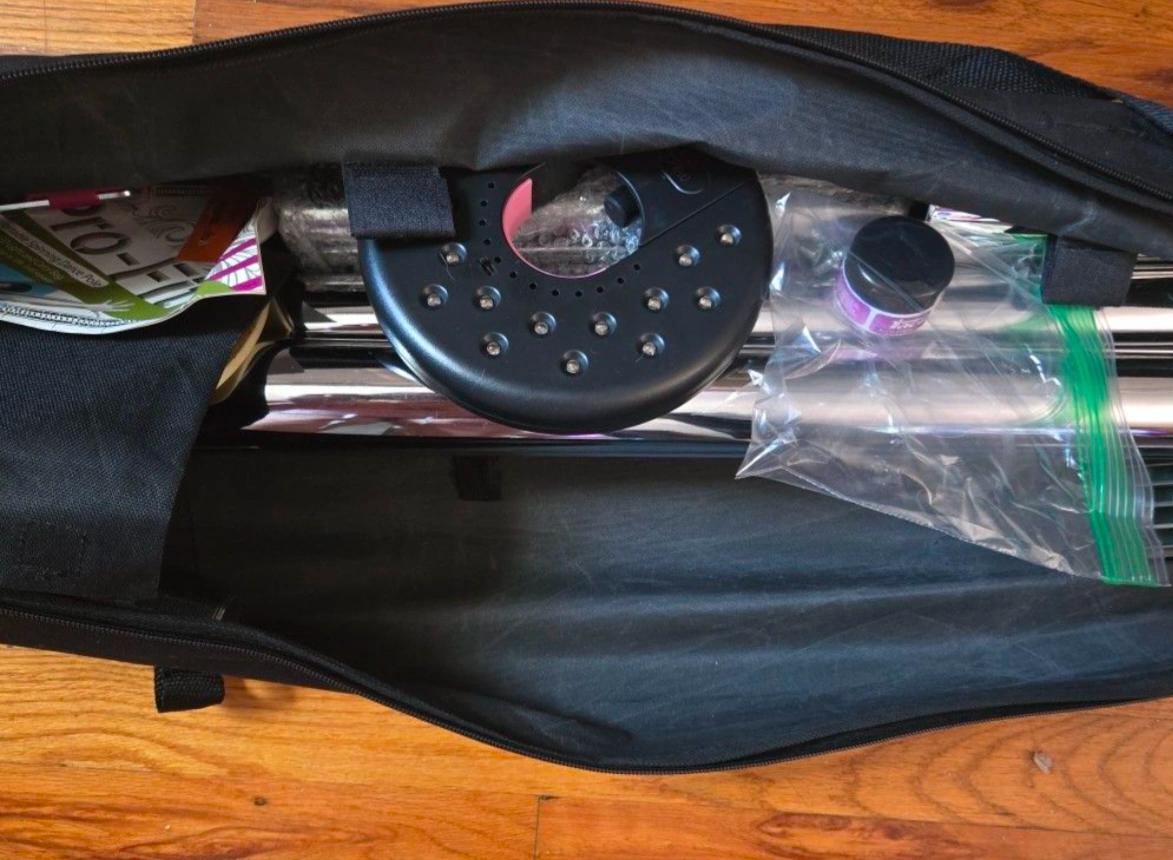 65Gently Used. All parts in bag, including installation tools and instruction manual. ALSO INCLUDED: carrying bag, dance lights attachment, and pole grip balm! Disclaimer: small tear on one side of carrying bag (pictured).