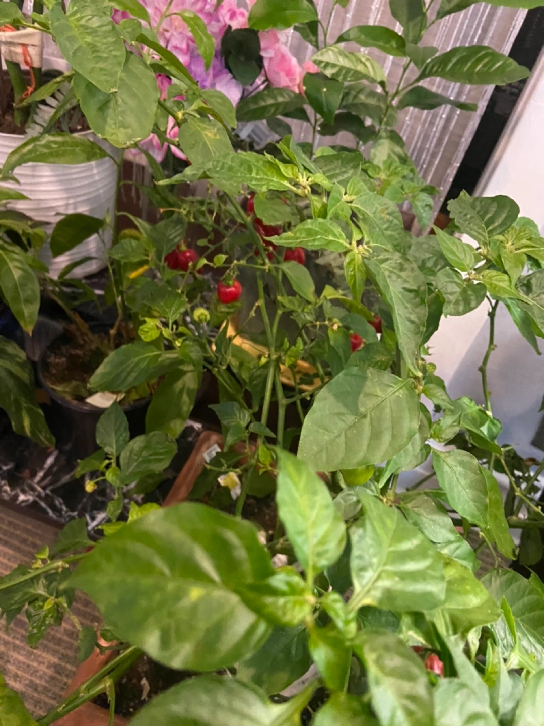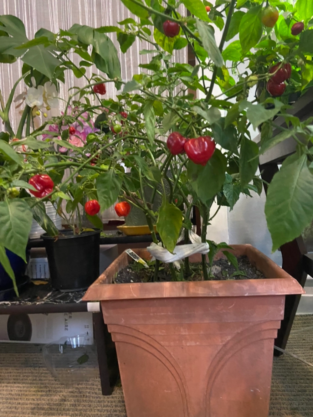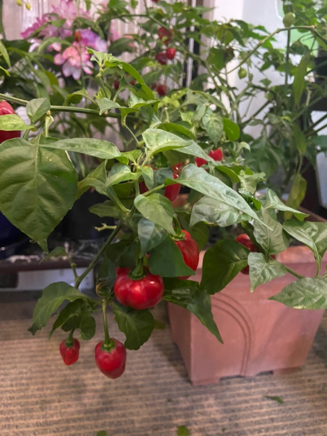 Habanero pepper plant in a terracotta pot. Plant is healthy and produces a lot of peppers. Plant is approximately 2 feet tall. 4 habanero plants in one pot with plenty of crop on it It can regrow more next season. It’s priced to sell. No negotiating .