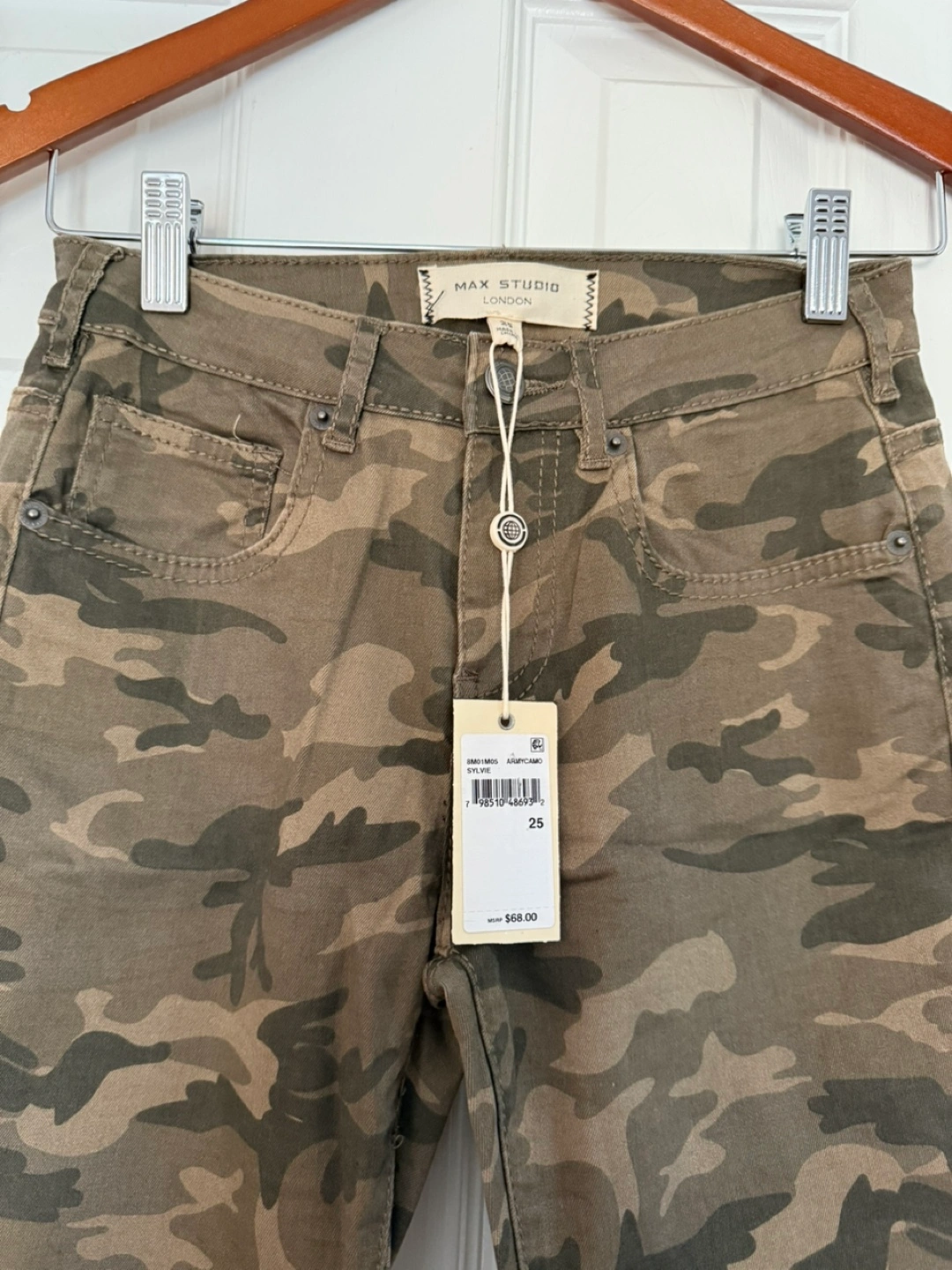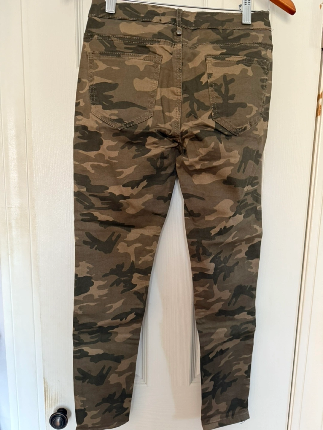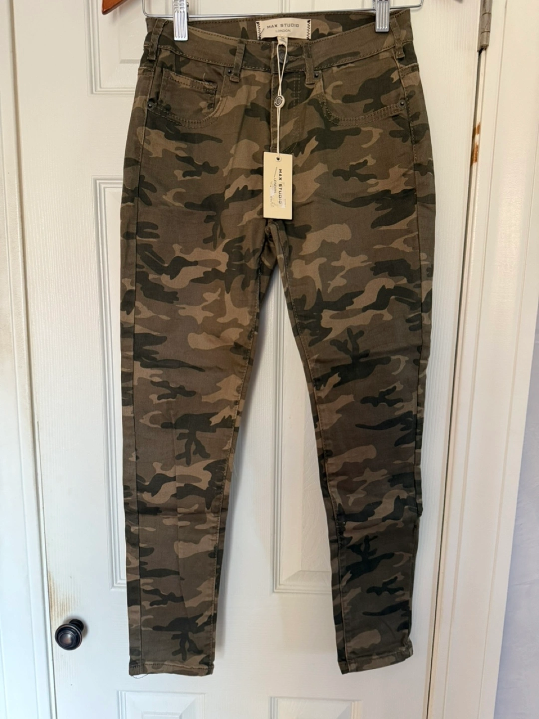 Camouflage print skinny jeans, never worn. Size 25.