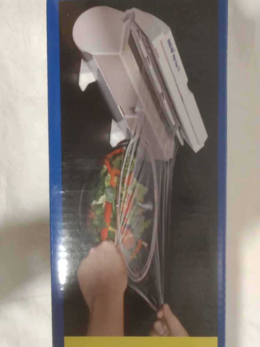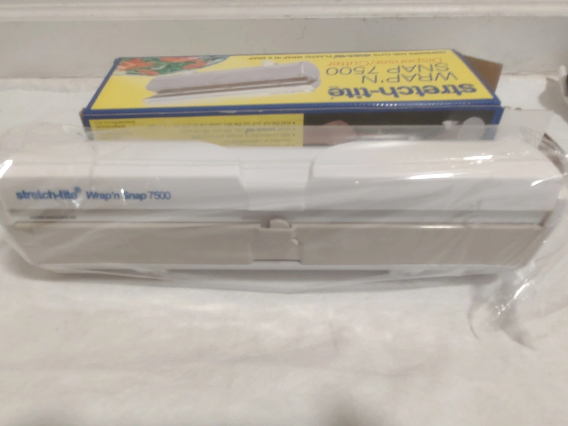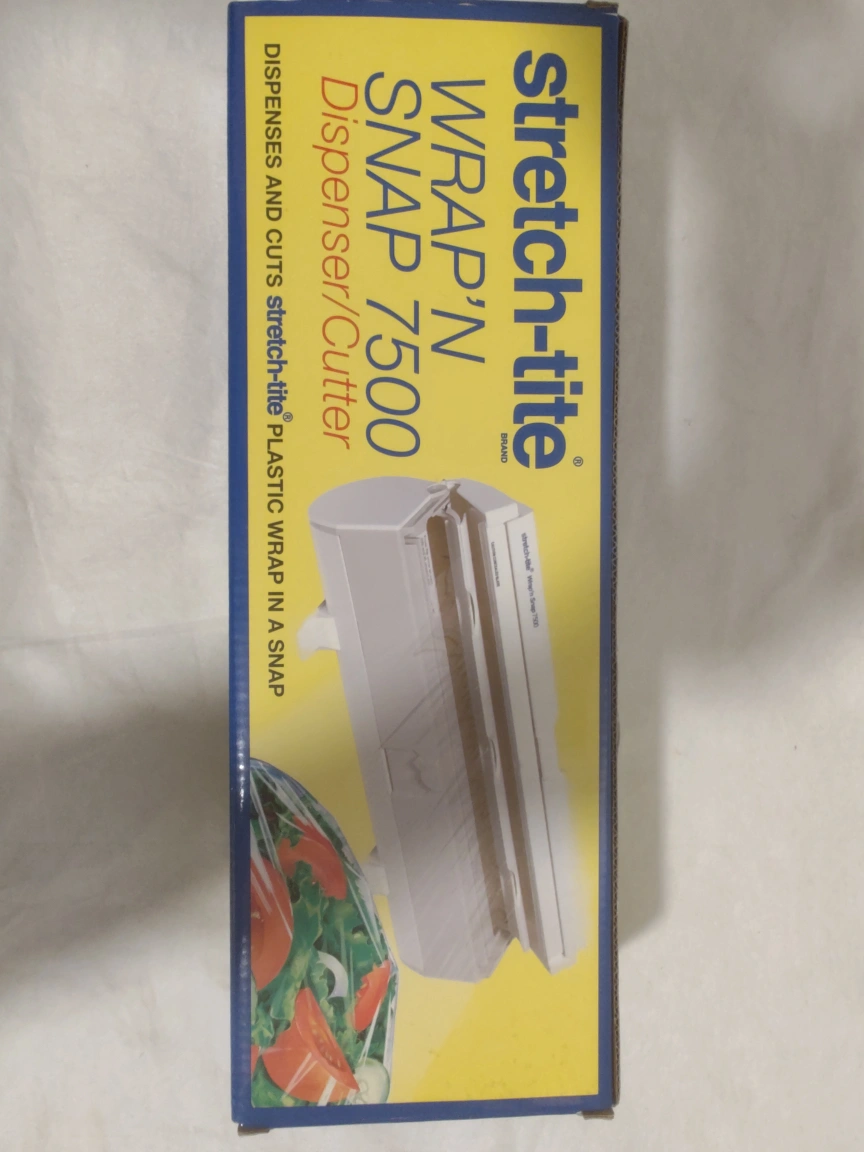 44Dispenser/cutter for Stretch-Tite plastic wrap. White and gray.