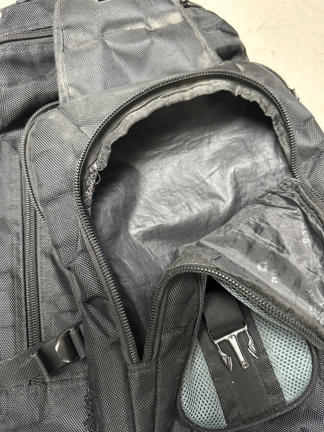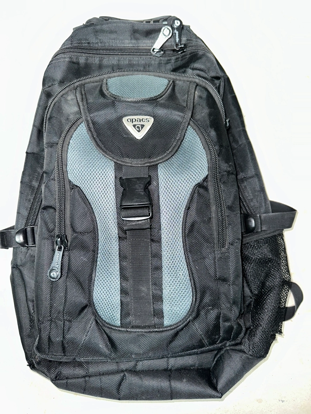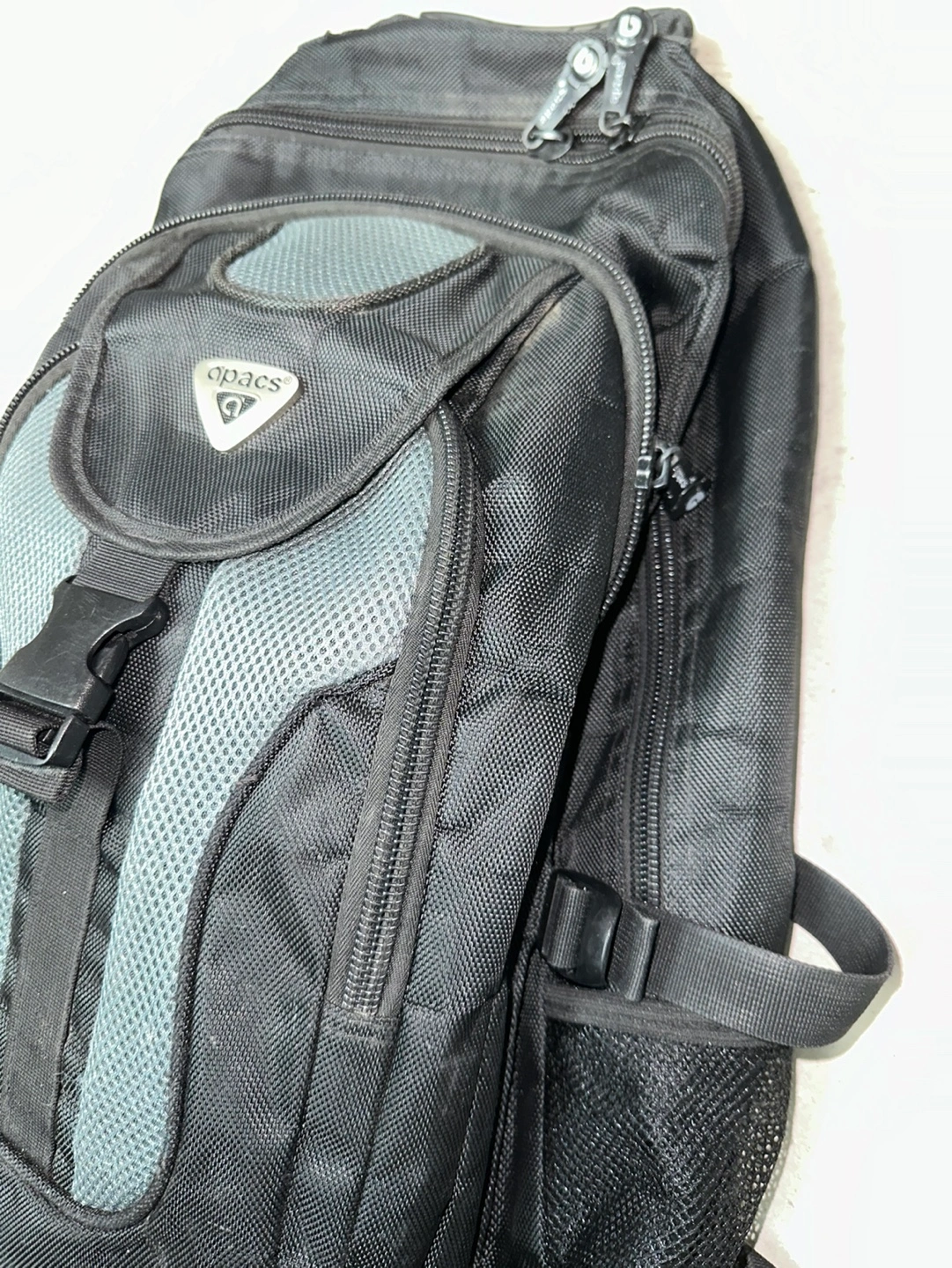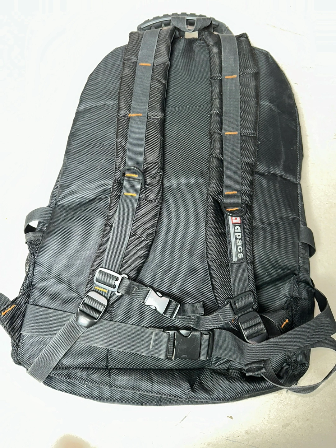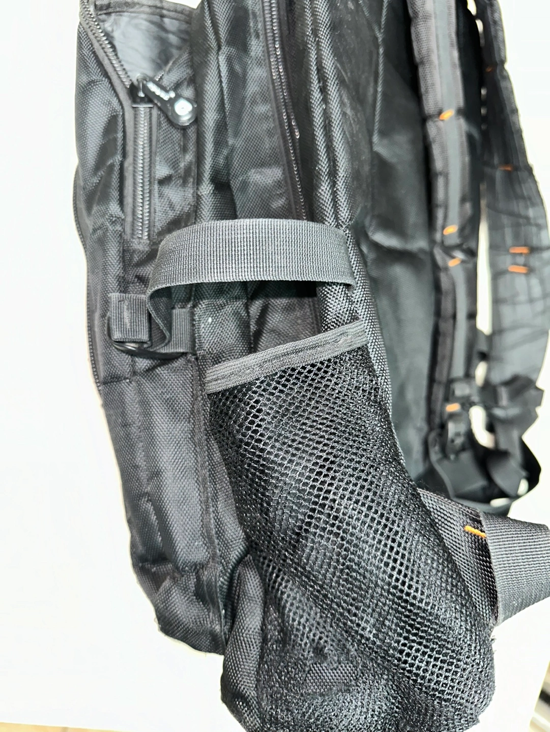 23Black G-PACs backpack with a zippered front pocket and a side mesh pocket. Multiple compartments and straps.
