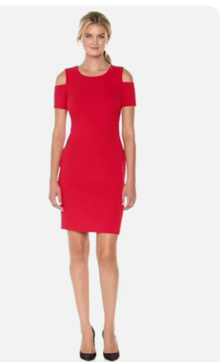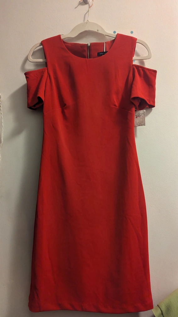Red dress with cold shoulder sleeves. Brand new with tags. Perfect for the holiday season 🎄🌟 But can also double up as a work/formal wear! 💼